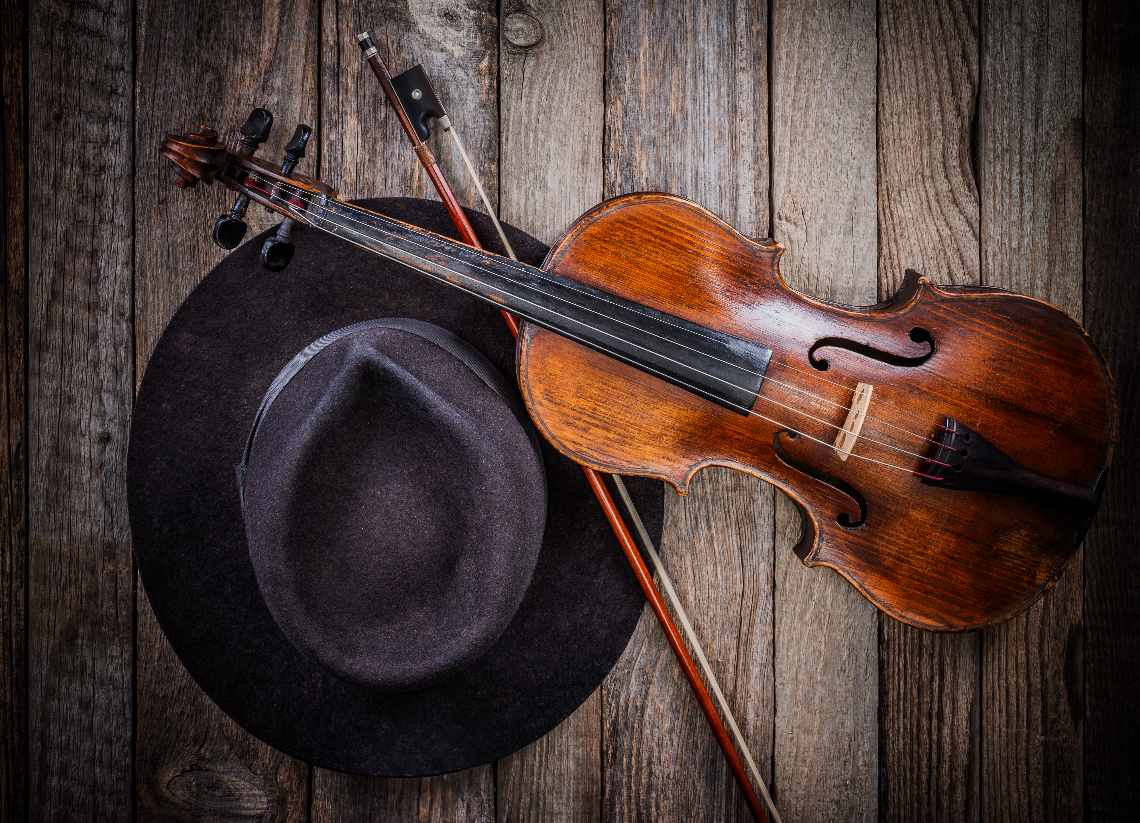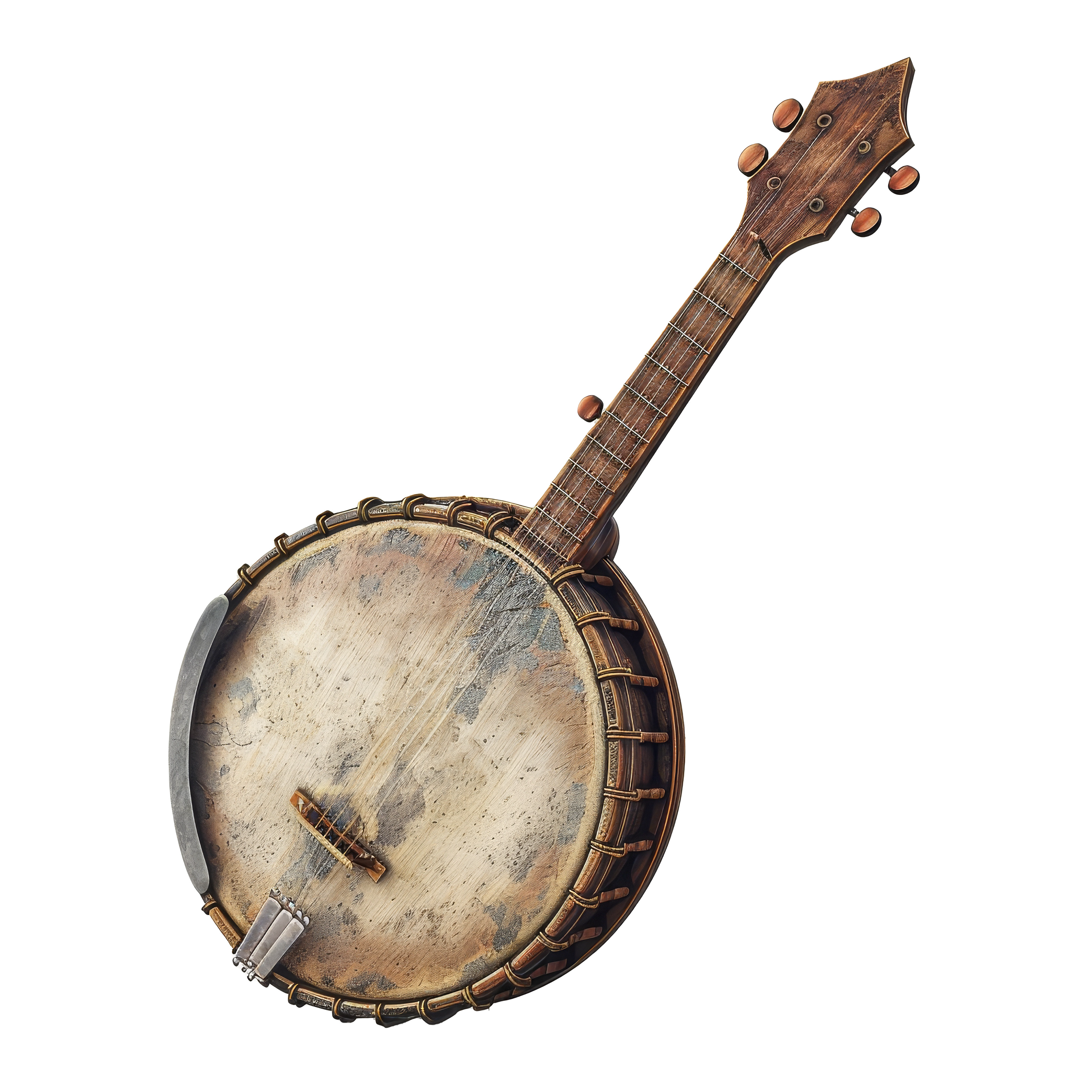 Created with images by itim2101 - "Old classical acoustic guitar on white wall background" • Tanu - "A vintage banjo with a weathered finish displayed against a transparent background, showcasing its intricate craftsmanship and historical charm" • aszfoto - "bombo leguero" • Szasz-Fabian Jozsef - "Hat and violin"