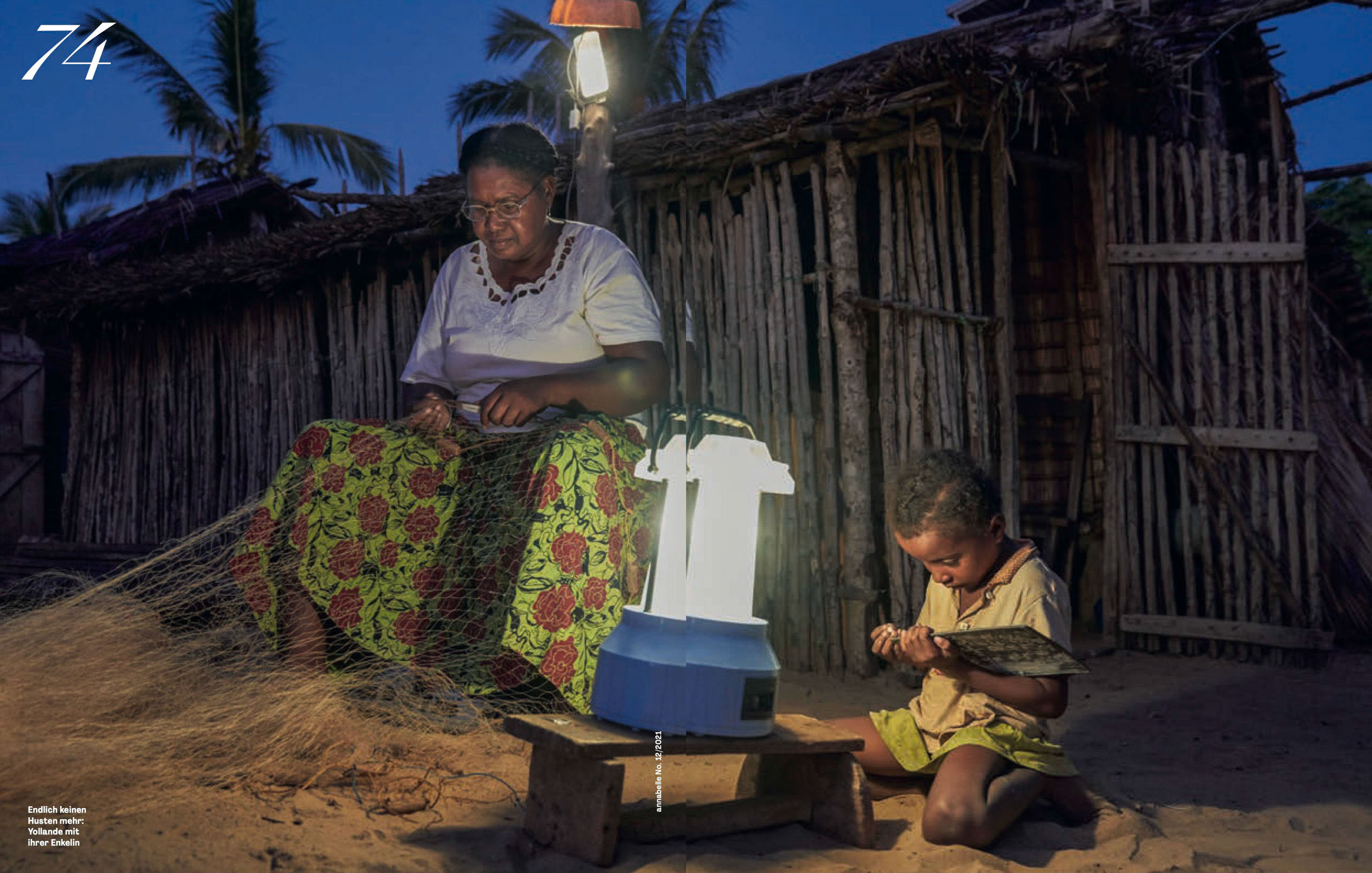 With a solar light, this child can continue working at night. They no longer need to burn kerosene lamps, which fill the houses with toxic smoke, or destroy forests for firewood.