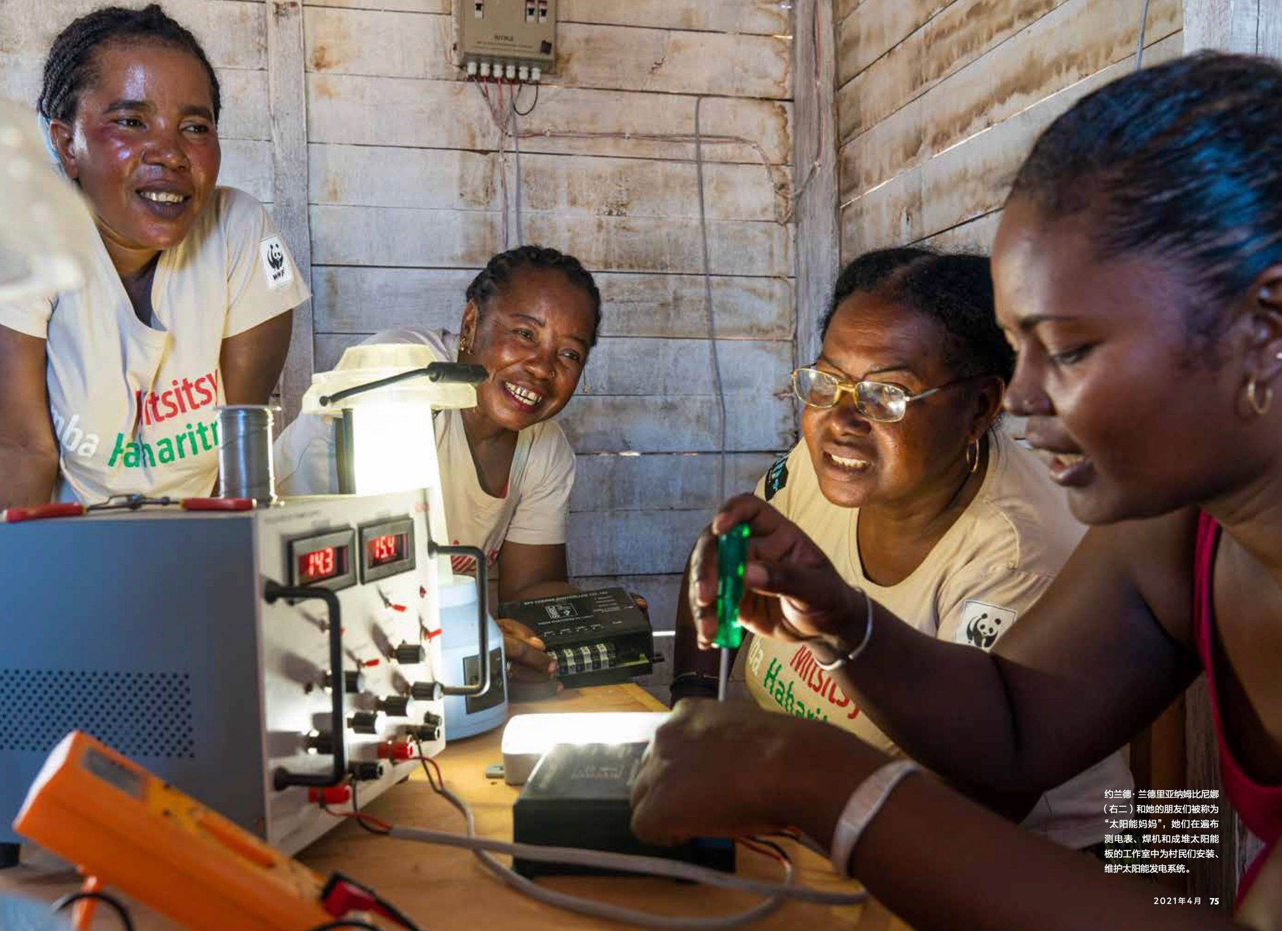 A "Solar Mama" are leading a revolution to electrify their village using solar power. Trained through a WWF program, the team installs and repairs solar panels, working daily in their workshop filled with tools, meters, and stacks of lights—bringing power and progress to their community.