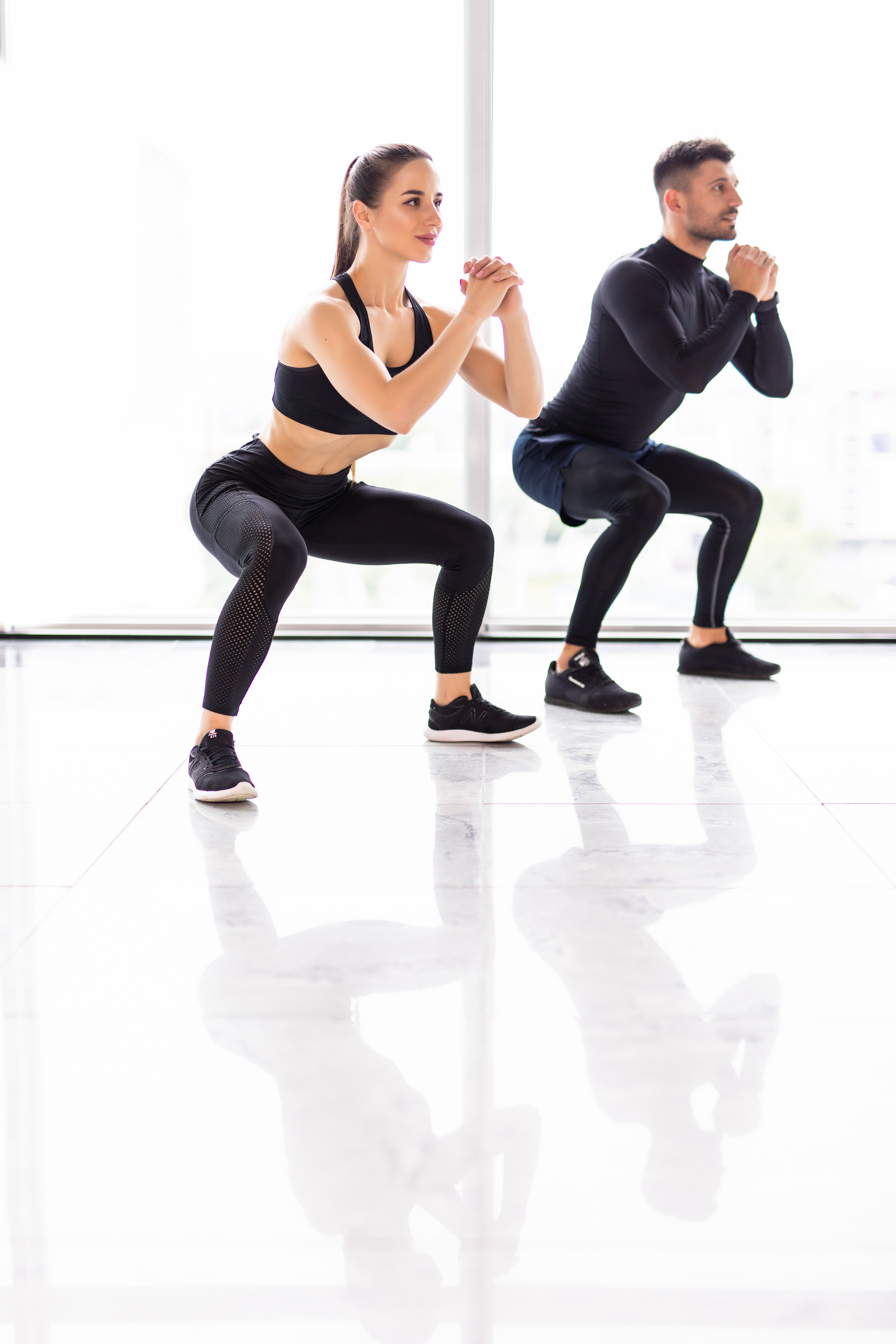 - Inicie con sentadillas estáticas, es decir sin subir y bajar repetidamente. Mantenga la posición por algunos segundos.