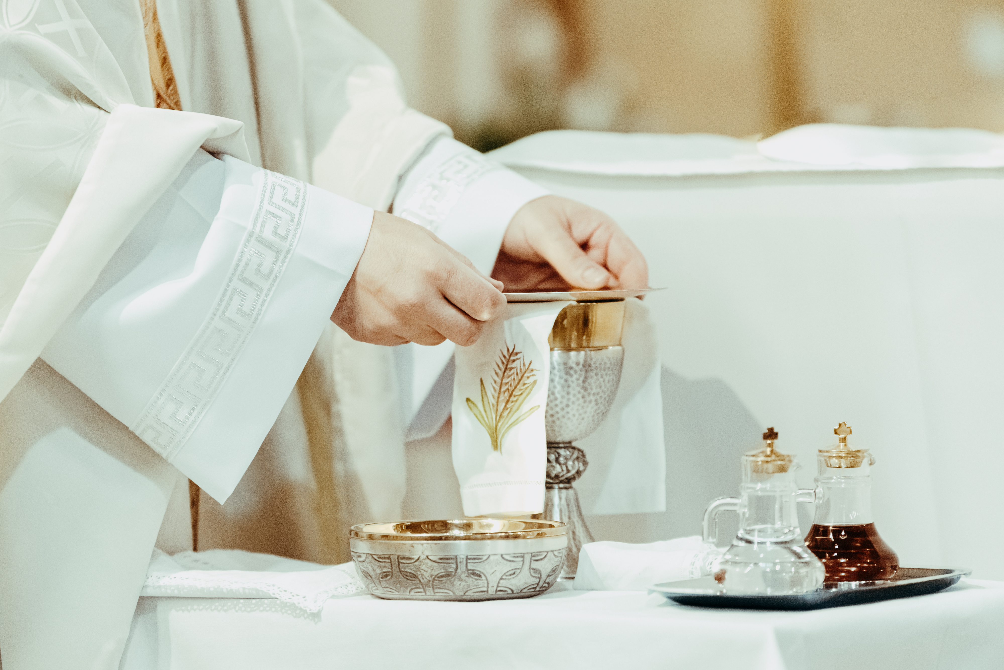 Created with images by Anna - " A field of red and pink roses with a soft boke of light in the backdrop" • Road Red Runner - "Christian priest prepares the supplies for the consecration liturgy." • Africa Studio - "Burning candles on dark background"
