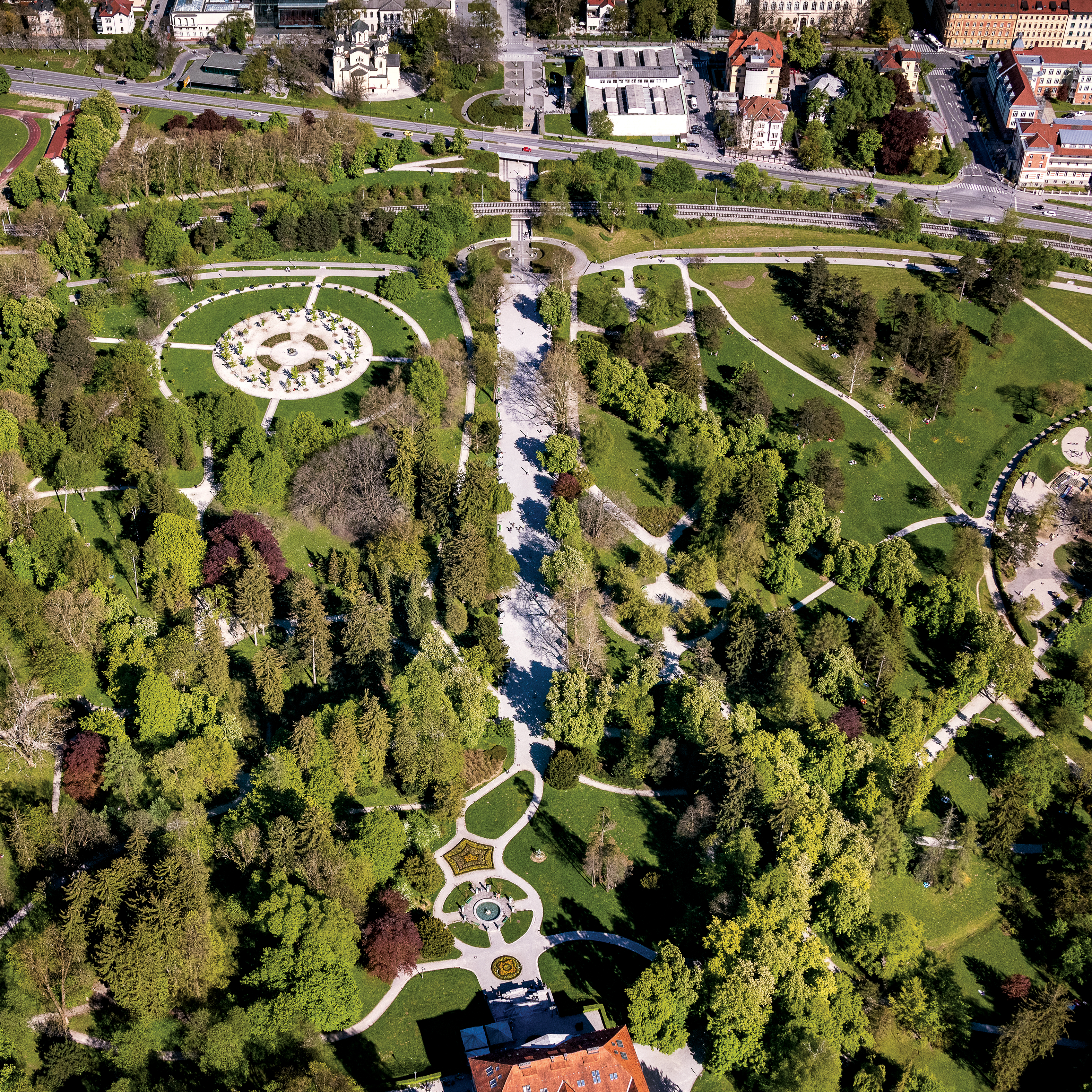 Together with his students, Plečnik immediately started work on regulatory and urban regeneration plans for Ljubljana, in which he often drew on Fabiani’s designs. He studied the city plan with mathematical precision to identify the symmetries of existing and proposed new spatial points.