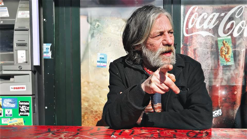 G: Vergesst nicht, wie lebenswert diese Strasse ist. Es wirkt manchmal so, als ob die Welt verrückt geworden ist. Das geht einige Kilometer von hier los, wo 15% eine Partei wählen, die unsere Strasse vermutlich als Musterbeispiel für “Links-Grün-Versifft” sieht. Von Brasilien bis nach China und ins Weisse Haus - überall der reine Wahnsinn. Die Sonntagstrasse und der ganze geografische Osten Berlins sind wie eine Insel. Ein bisschen wie im Film Casablanca treffen sich hier Menschen aus aller Welt, auf friedlichem Territorium. Und man kann hier lachen, die Leute haben Humor. Erst gestern wurde mir beispielsweise von Steffen** mitgeteilt, das er gar nicht wusste, was für ein Warzenschwein ich eigentlich bin. Das kannst du dir nicht ausdenken.