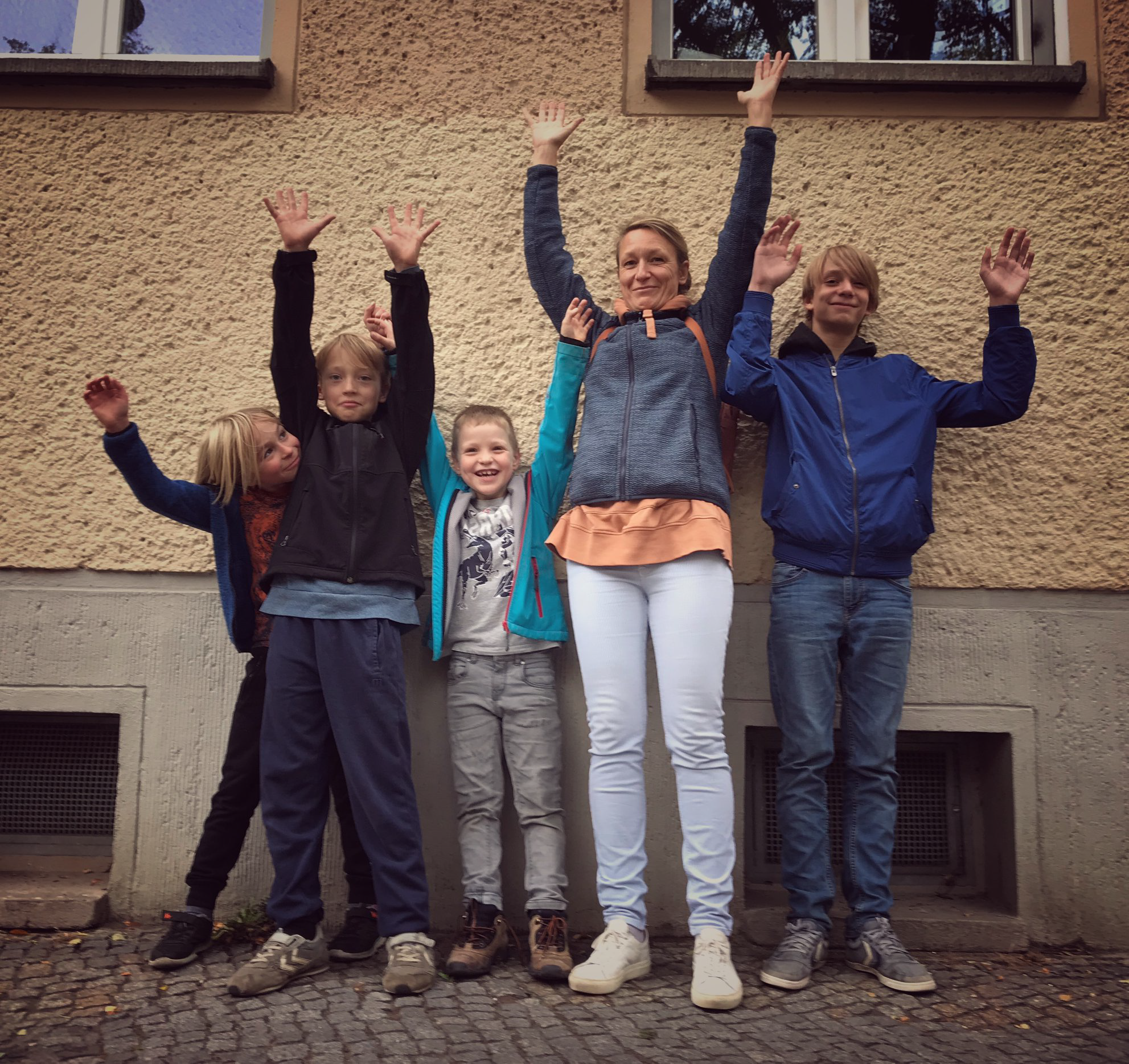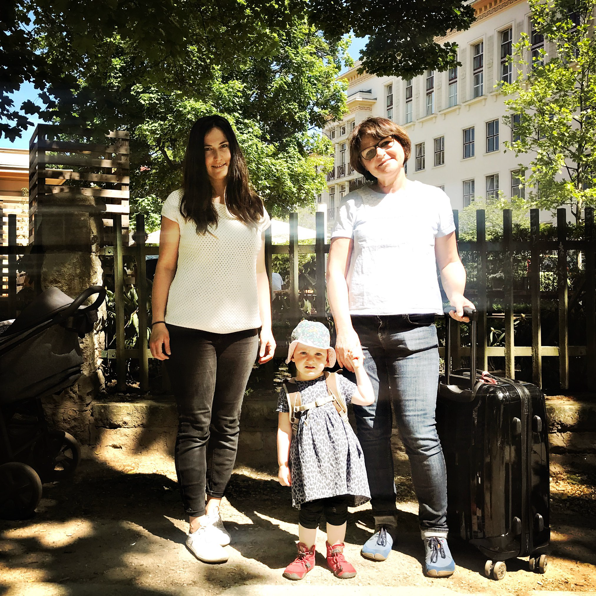 M: Heute war ich nur in der Sonntagstrasse. Gestern in Kleinmachnow. Papas Freund hat ein Kind und das wurde eingeschult und da gab es eine Feier.
