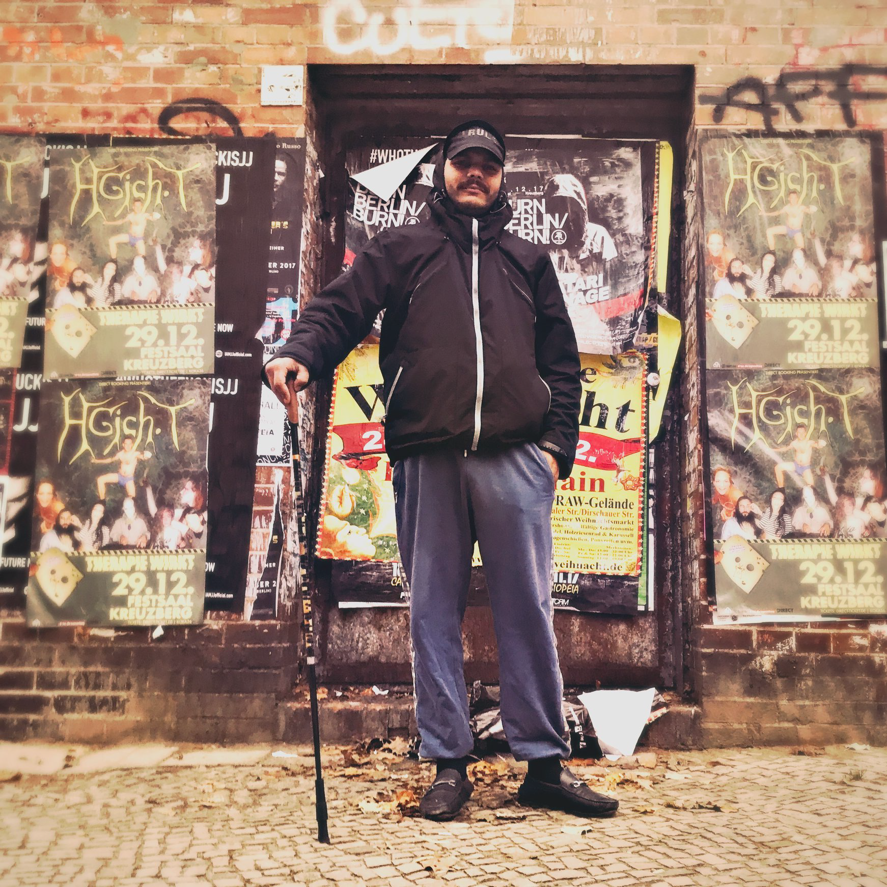 S: Ich hab mal die Bullen verarscht. Macht man zwar nicht, aber ich habs gemacht, ok? Ich hab mich bei der Kirche versteckt. Und die Bullen standen mit der Wanne hier. Acht Bullen. Und haben mich gesucht. Aber ich stand an der Kirche… Da ich aber dann Durst hatte, wolle ich rüber zum Spätkauf zum Bier holen. Und der eine Bulle hat mich wiedererkannt… Handschellen und ab ins Urban-Krankenhaus. Psychiatrie. Mehr kann ich dazu nicht sagen.