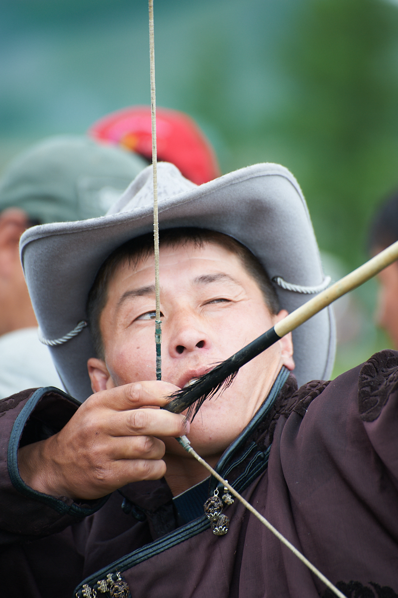 Archery: Archery skills are an integral part of nomads lifestyle. From the very childhood such qualities as perfect eyesight, measurement, patience and strength are nourished to develop a good archer. At Naadam, people may perform in individual competitions, but as a rule, several teams of archers compete. The targets are leather cylinders about 250 feet (75 meters) away.