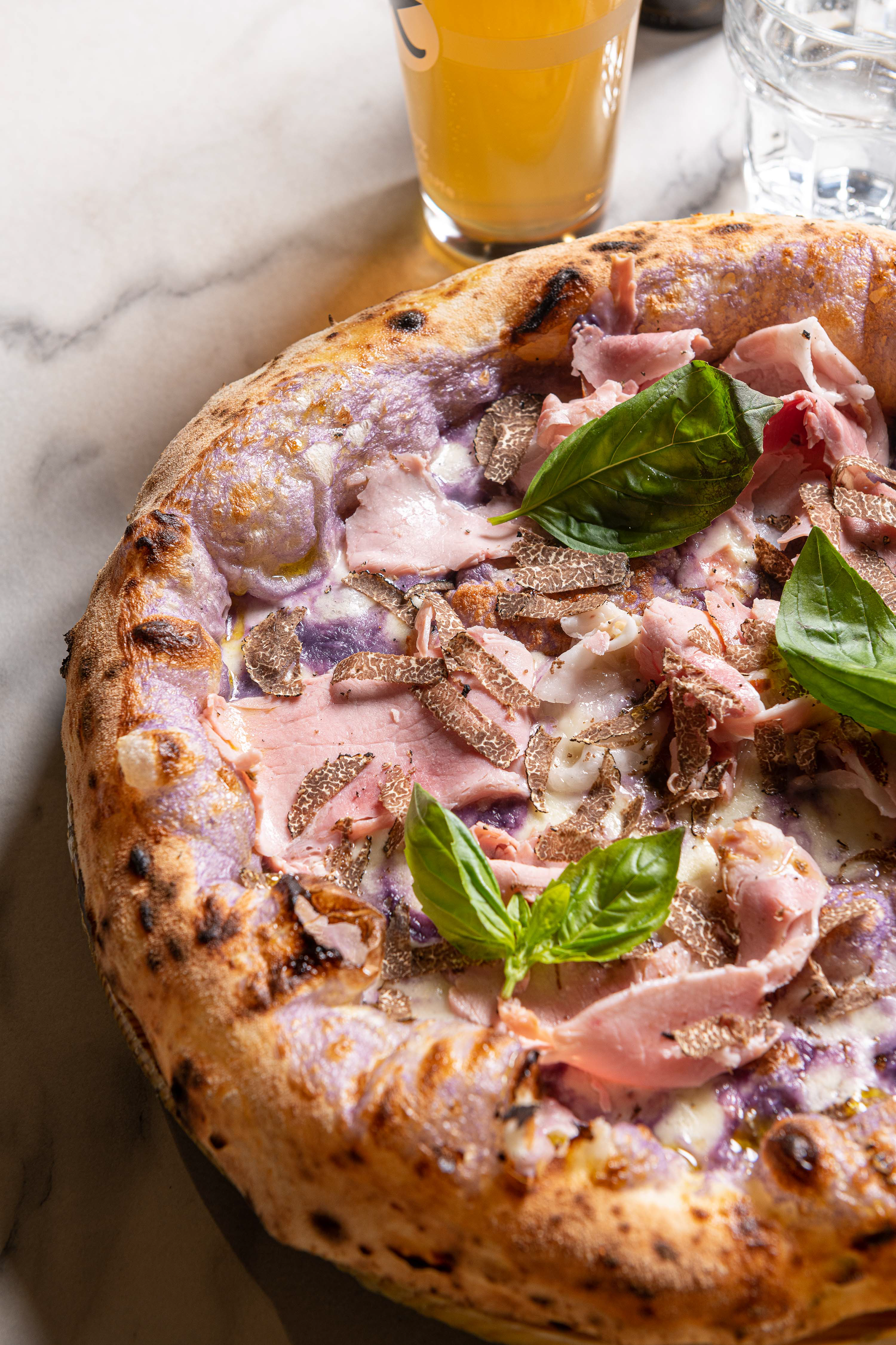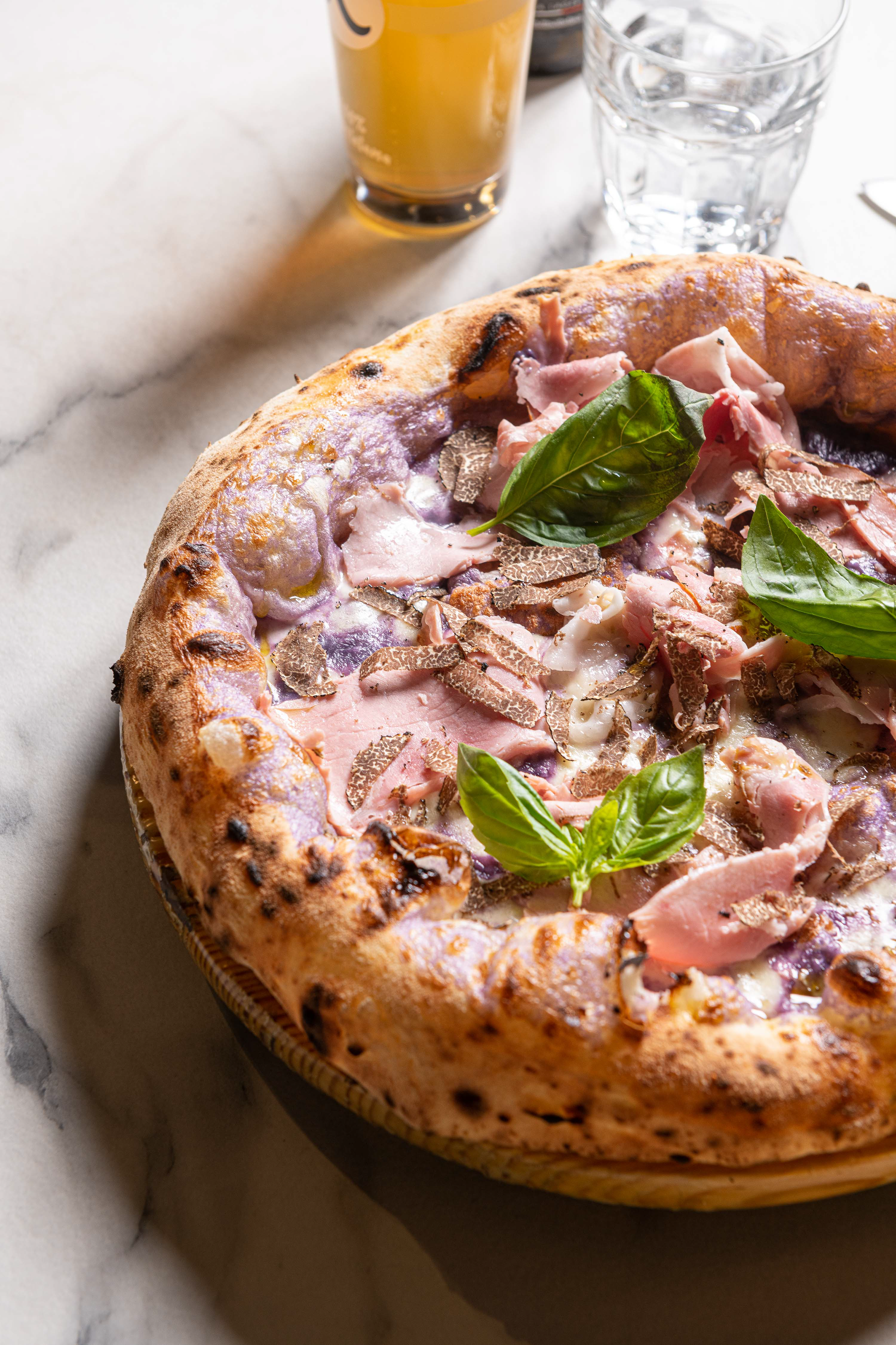 THE TASTE OF GENUINENESS: zucchini cream in double consistency, blends with fior di latte from Agerola, village peppered bacon, a drizzle of extra virgin olive oil and fresh basil.