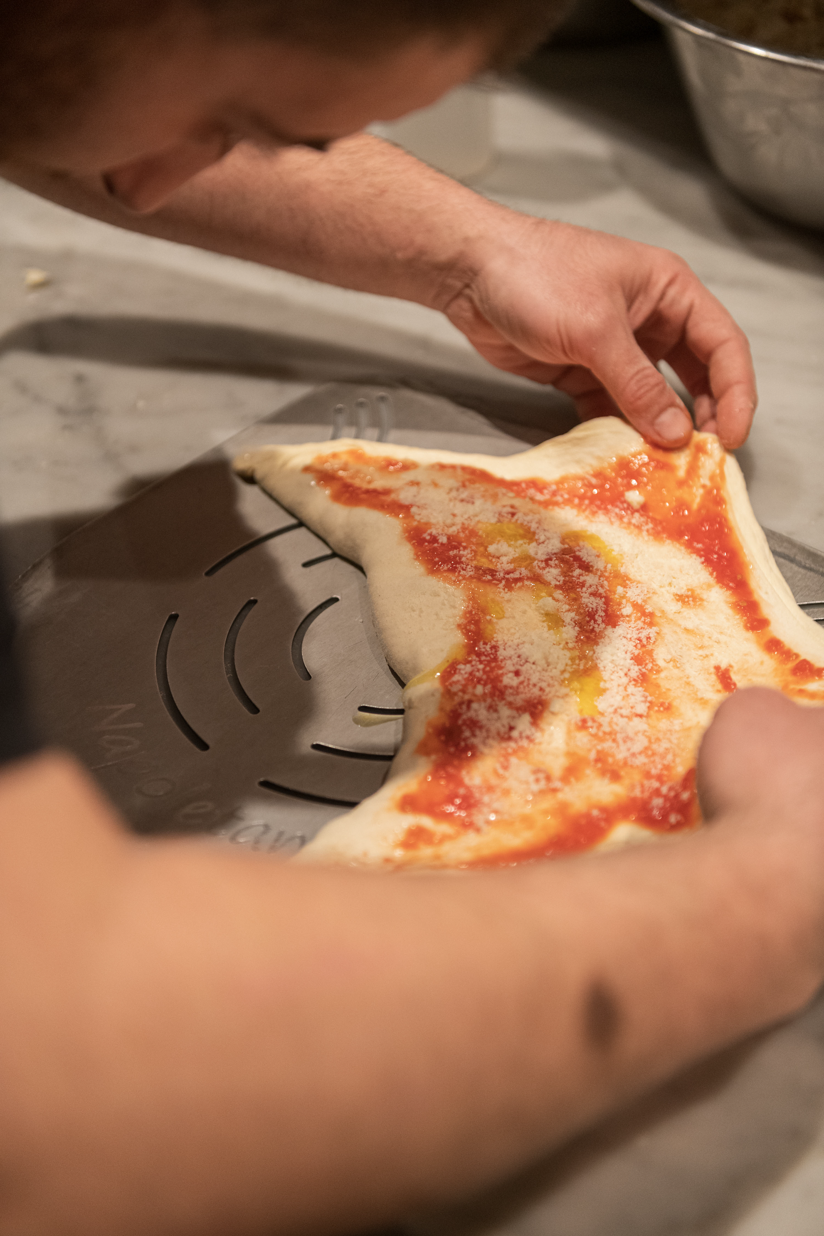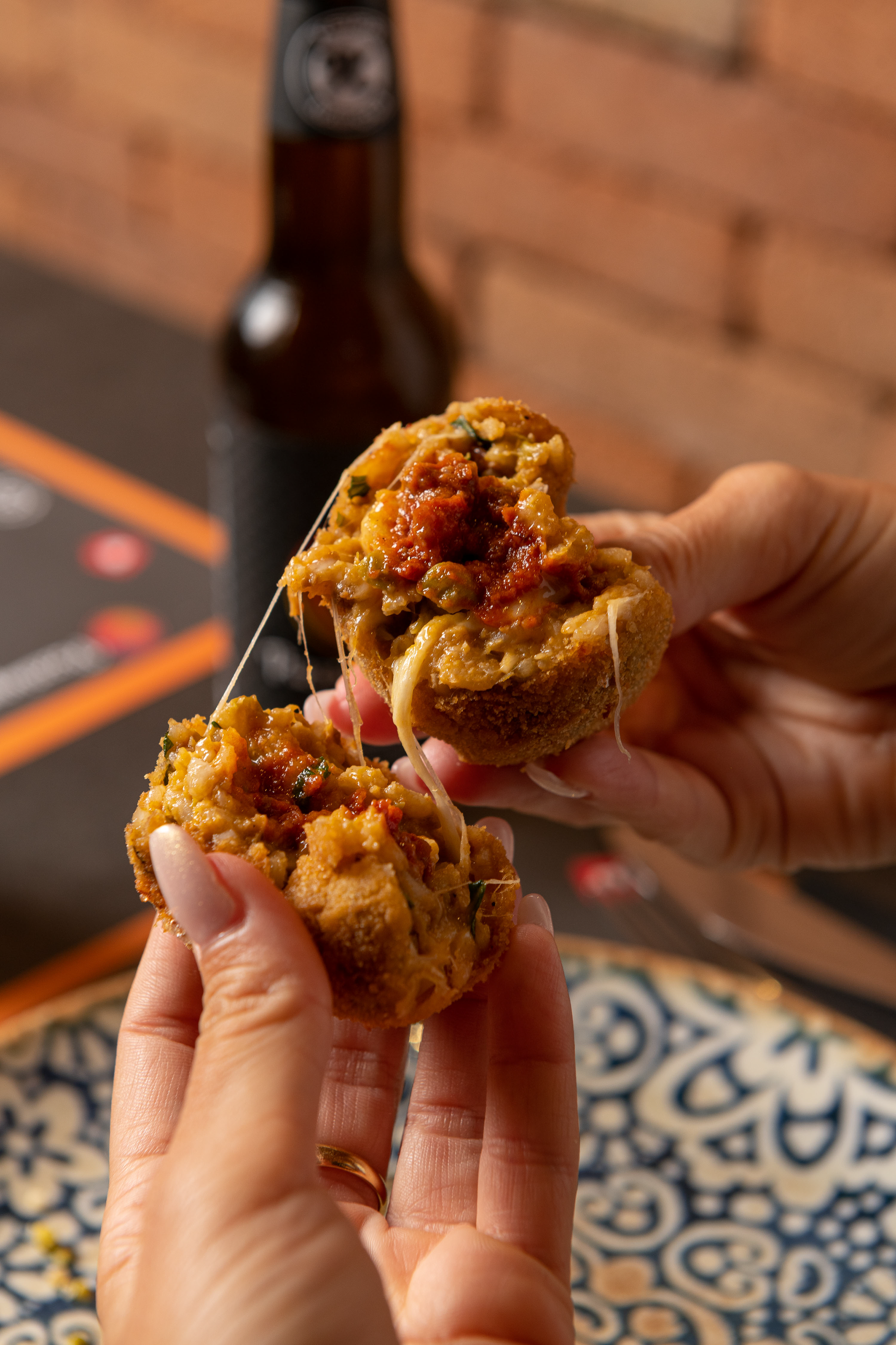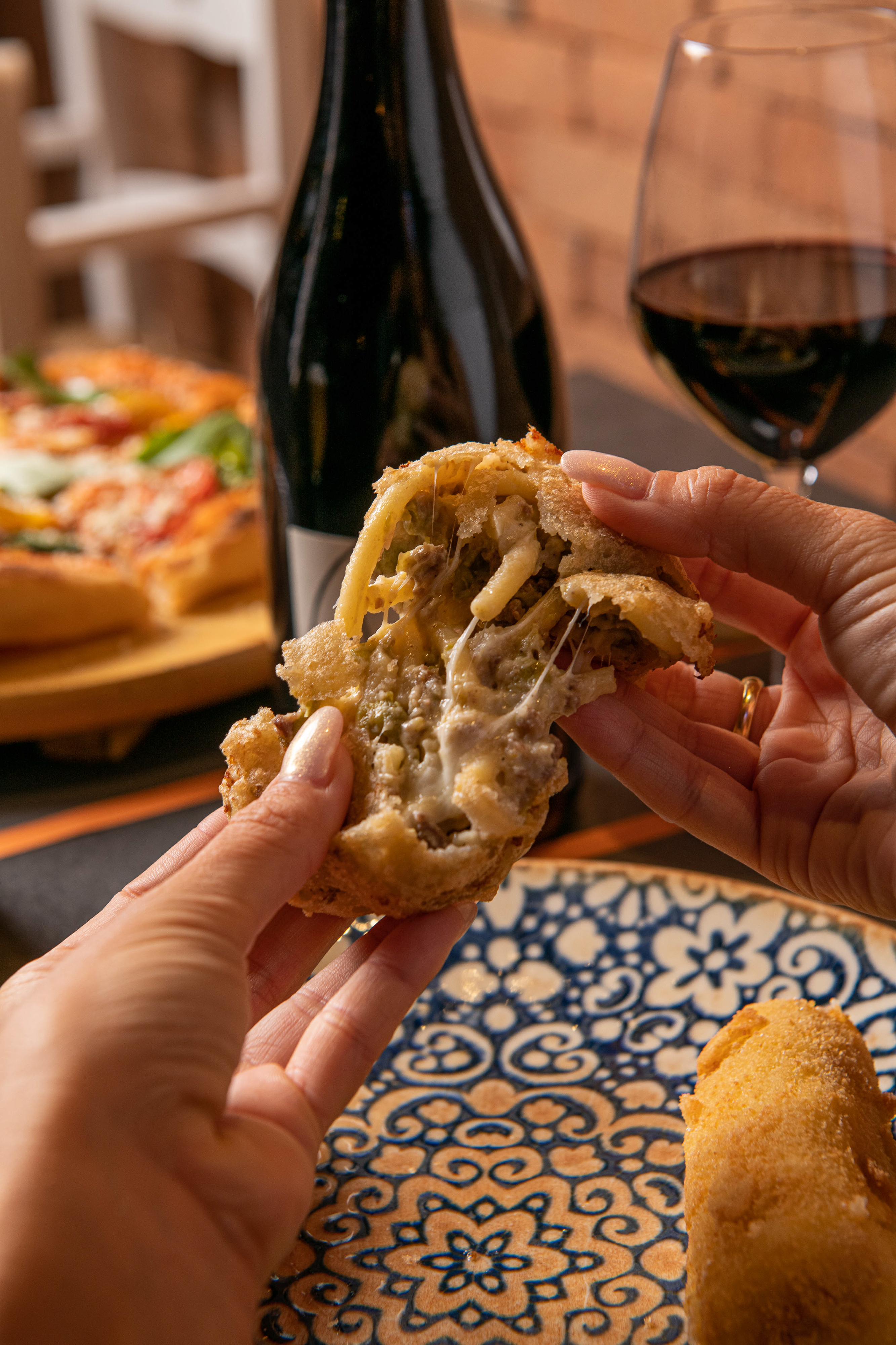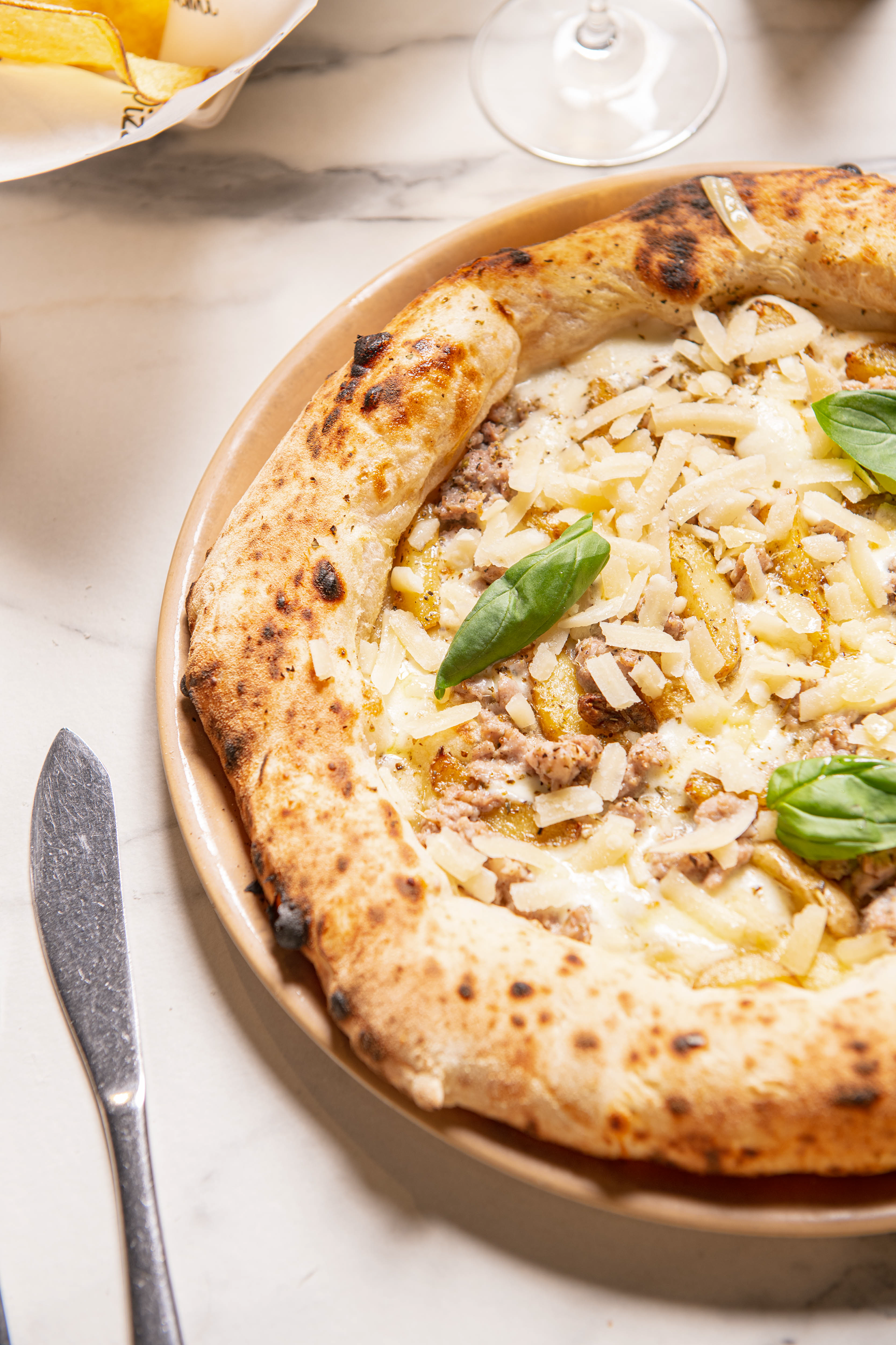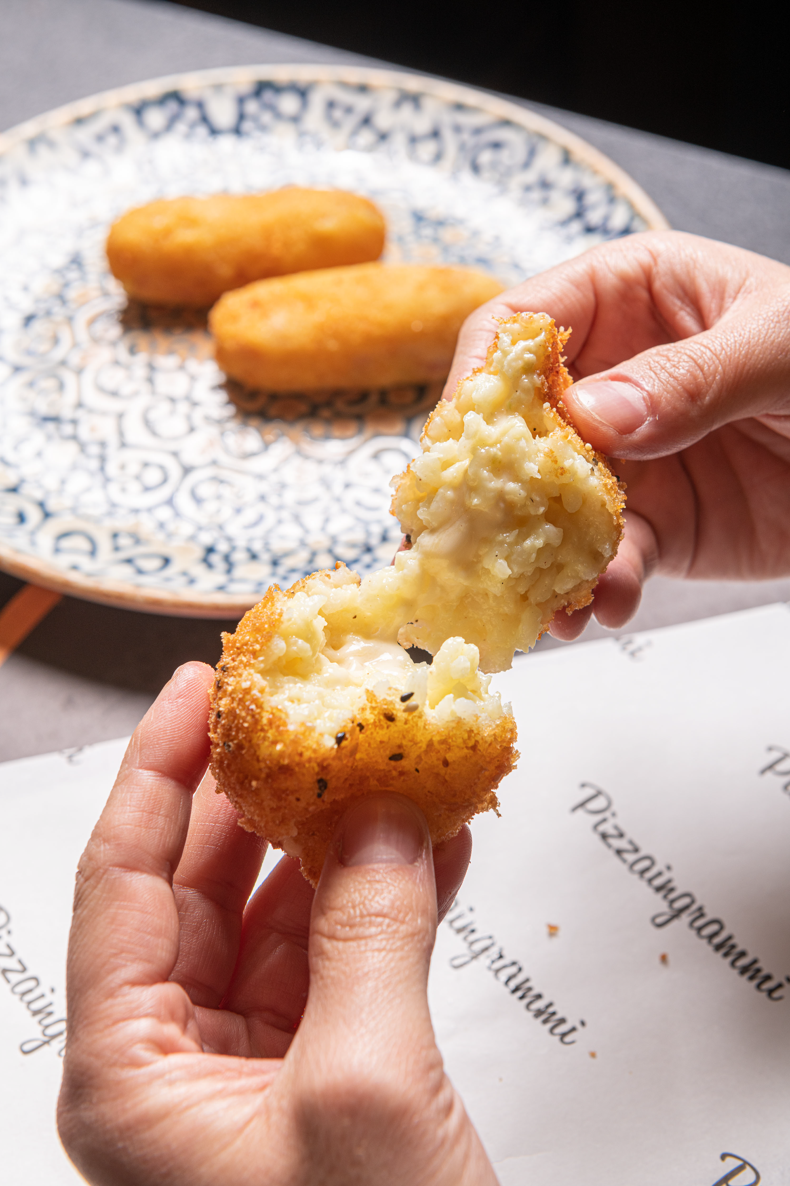 A GREAT CLASSIC REINTERPRETED WITH ELEGANCE: velvety Avezzano potato, fior di latte from Agerola filante, Parmigiano Reggiano 18 months D.O.P., Napoli salami and a touch of cuvèe pepper.