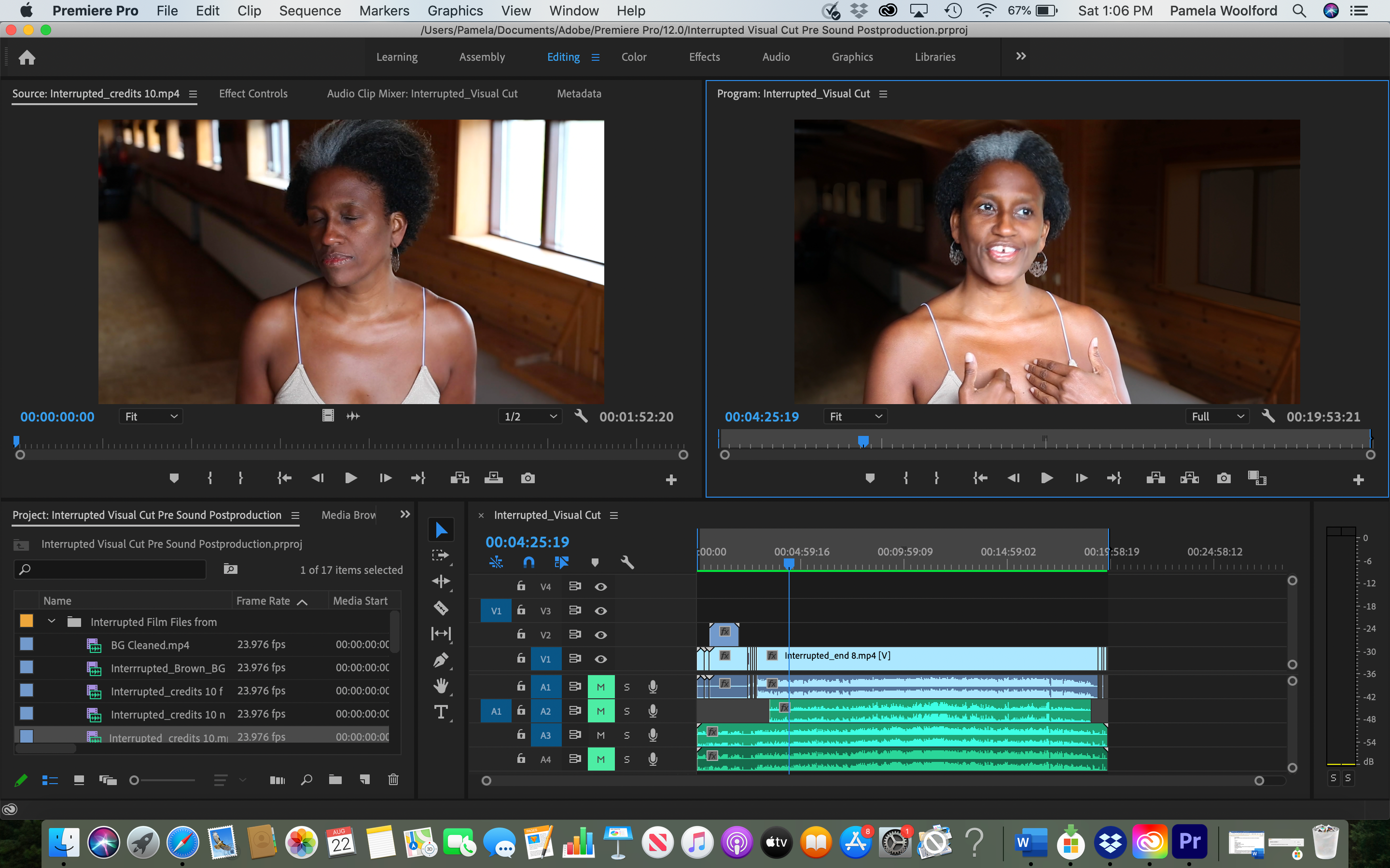 Postproduction is performed by American sound designer Gregory Robinson, whom Pamela met while in Paris, and visual-effects editor Michael Glasco, who has created visual effects on films in the Star Wars, Star Trek, Transformers, Iron Man, and Chronicles of Narnia series. The film's associate producer is Pamela's octogenarian mother, Rev. Sadie Woolford, who is also a writer and was executive producer of Pamela's multi-award-winning film Generation.