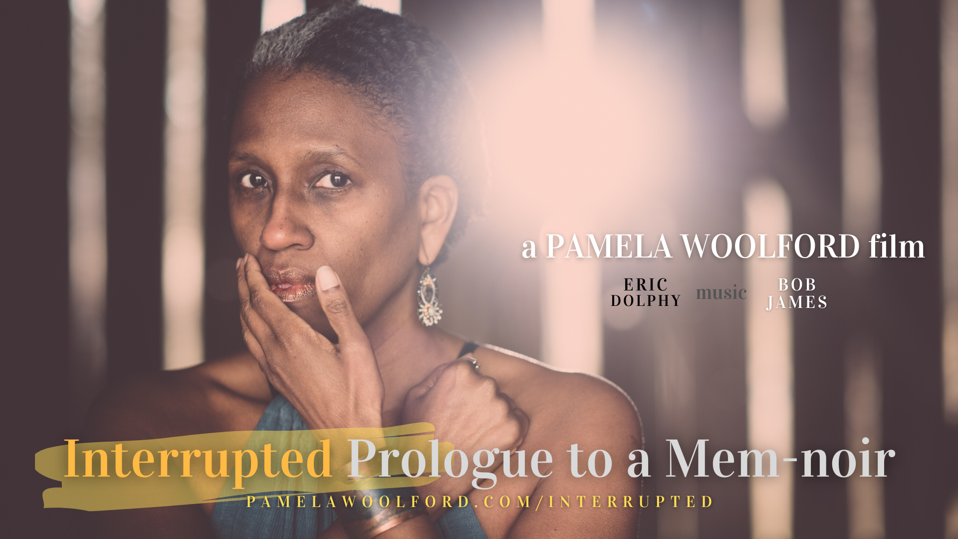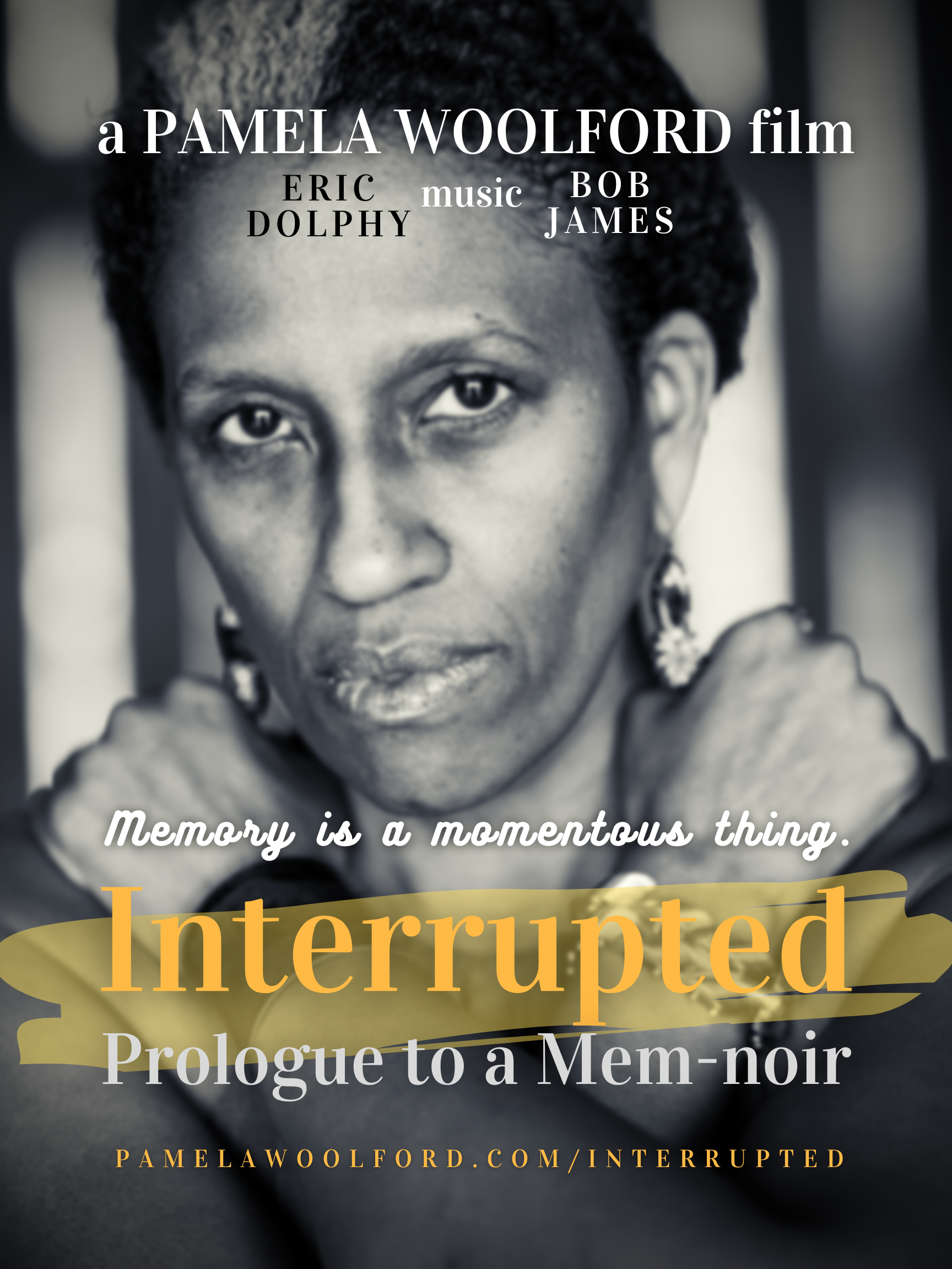 Interrupted: Prologue to a Mem-noir was originally scheduled to premiere at a solo show of Pamela Woolford’s work at the Joan Hisaoka Healing Arts Gallery in Washington, DC, as part of her multidisciplinary memoir exhibition. Due to the new coronavirus, her gallery show opening has been postponed to April 2022.