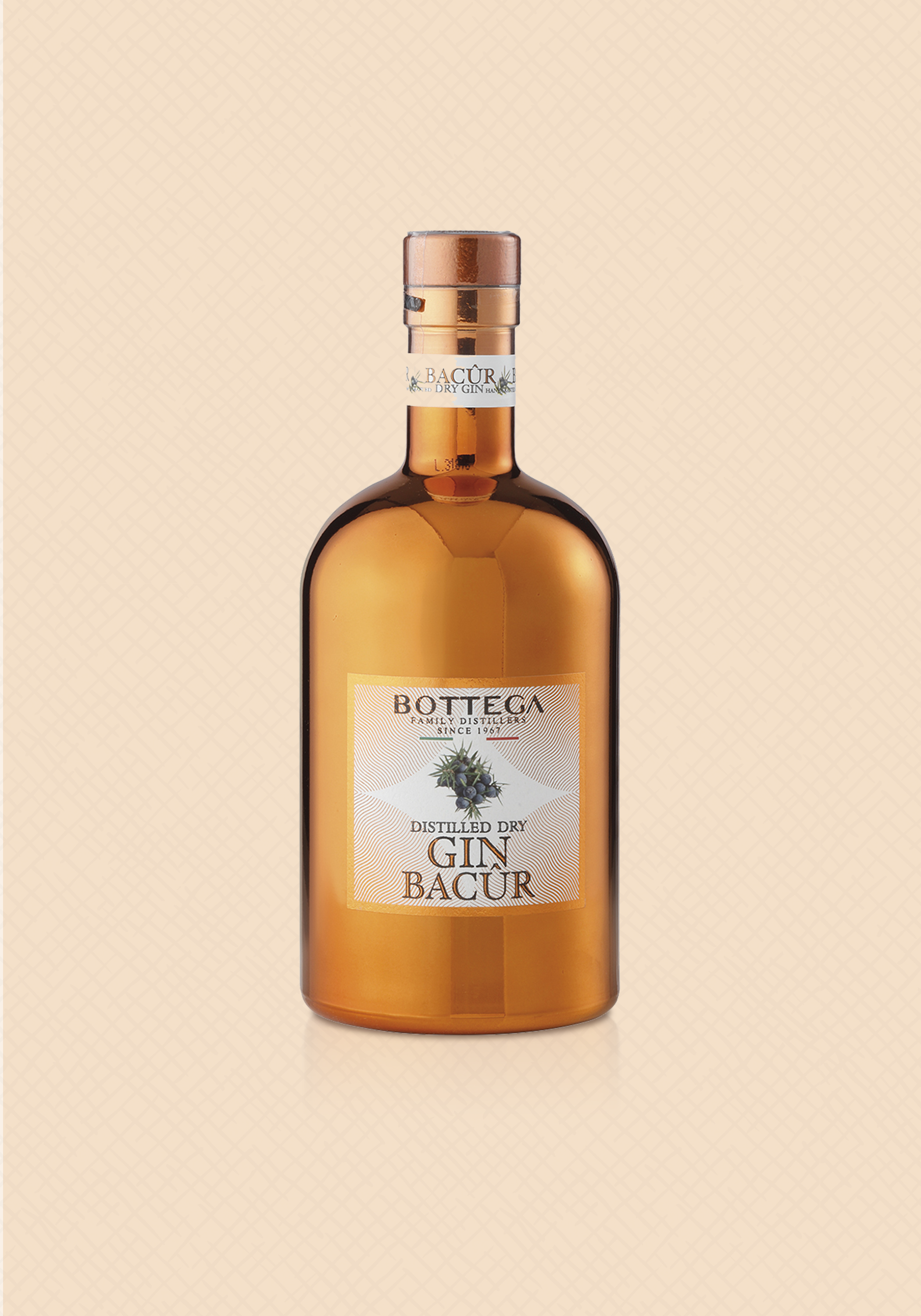 Bottega Bacûr Gin, produced by Bottega SpA, owes its unique character to the botanicals used to produce it; juniper berries from Tuscany, sage leaves from Veneto, lemon zest from Femminello Siracusano (Sicilian Lemons) and water from the Italian Alps.