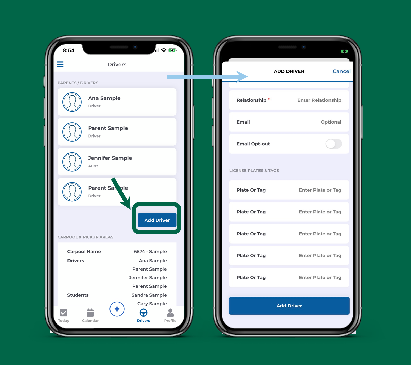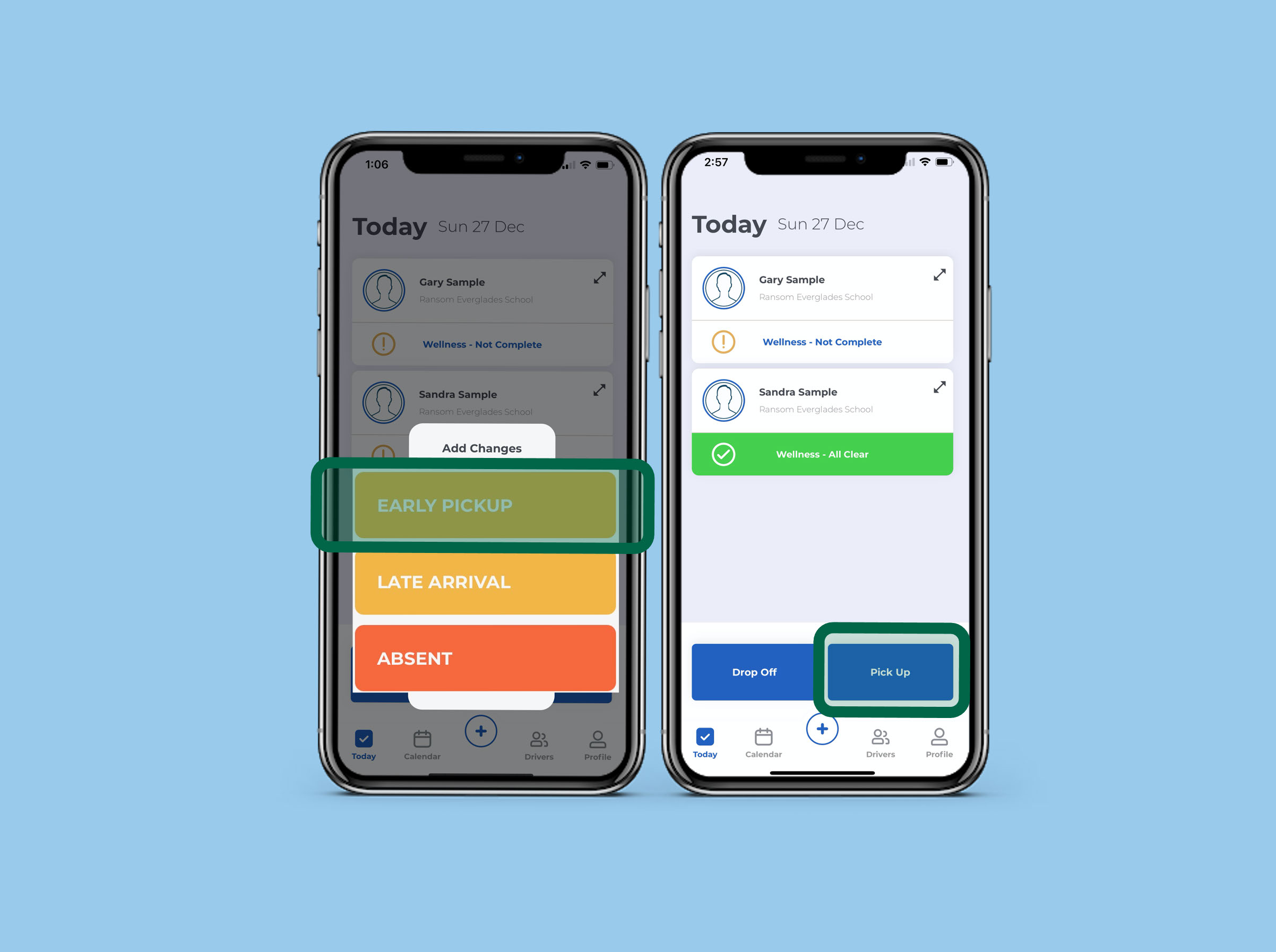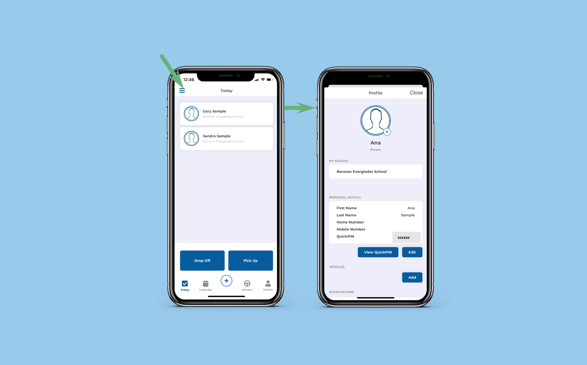 - self-manage authorized drivers for student pickup