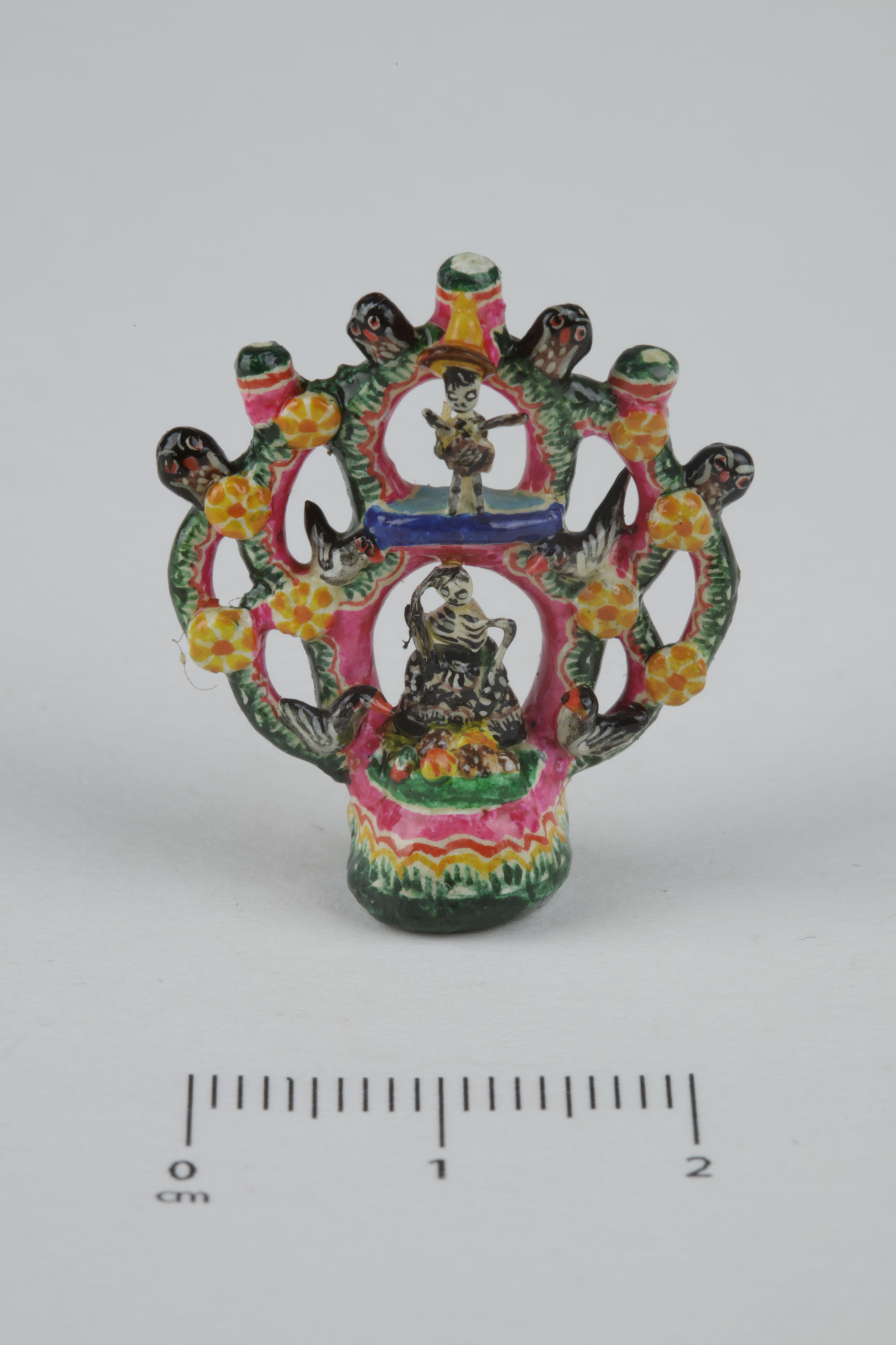 Como reflejo de la vida cotidiana y festiva las figuritas pueden mostrar oficios de antaño y mercados, así como danzas, fiestas y músicos. Las exquisitas pulgas vestidas son refinadas esculturas realizadas en la cabeza de un palillo de madera. Las máscaras miniaturas nos deleitan con la fidelidad y detalle que guardan con sus contrapartes para adultos.