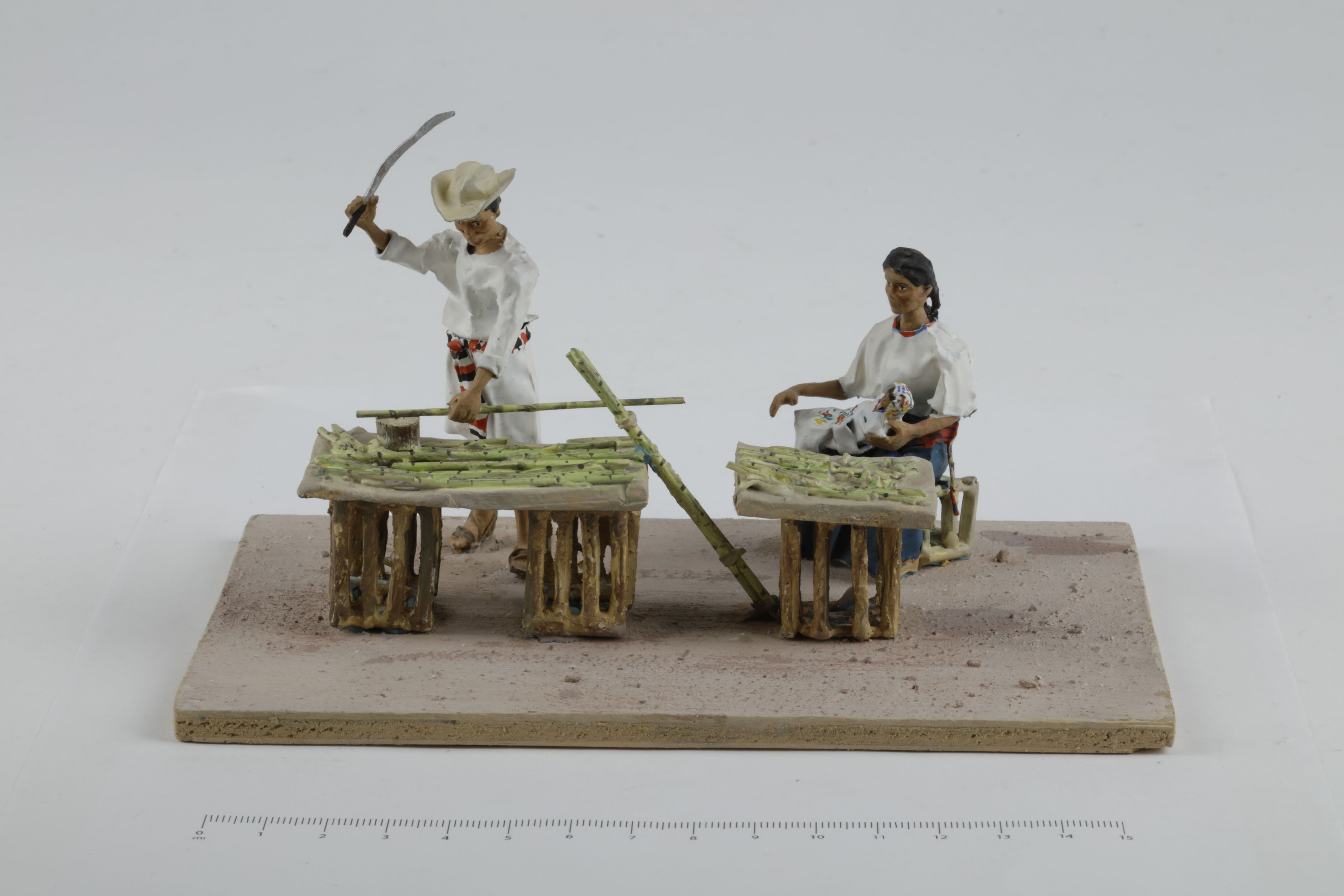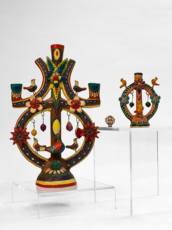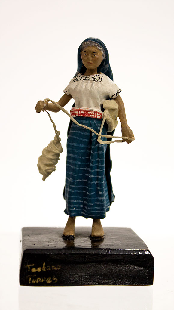 Por su parte, Teodoro Torres con su esposa Susana Navarro, transformó la herencia familiar de las figuras de plomo para reflejar la gran diversidad de la indumentaria indígena a través del uso del antimonio.