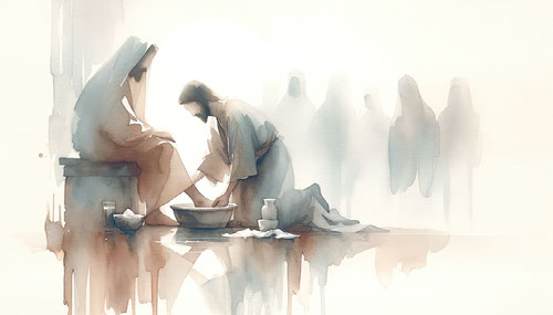Created with an image by Faith Stock - "Washing of the Feet. Jesus. Maundy Holy Thursday. New Testament. Watercolor Biblical Illustration "