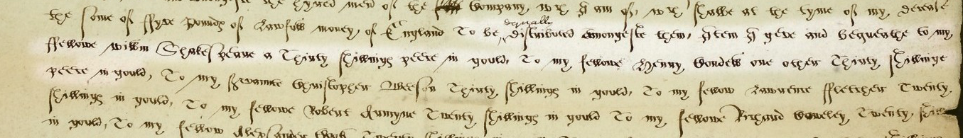 Shakespeare was named as a “fellow” of Phillips in Phillips’ will when he died in 1605, along with other members of the King's Men company (left of the page, 5th line from the bottom).