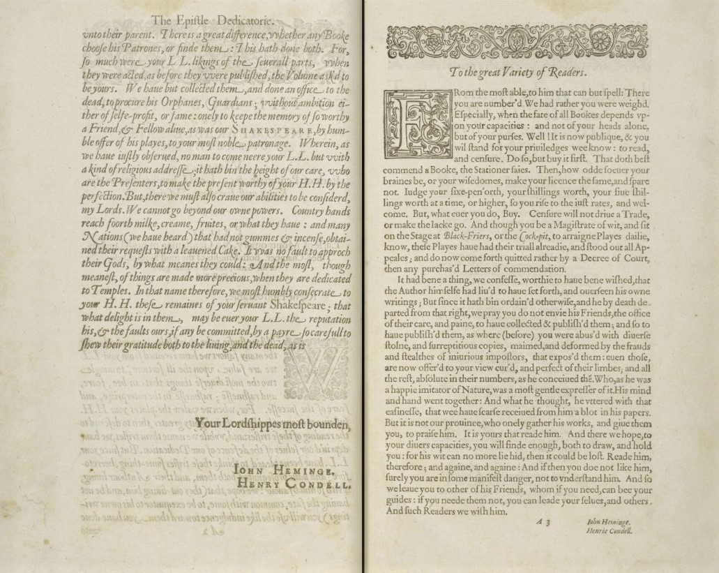 Heminges and Condell state that the works in the First Folio were written by “so worthy a friend and fellow...as was our Shakespeare”.
