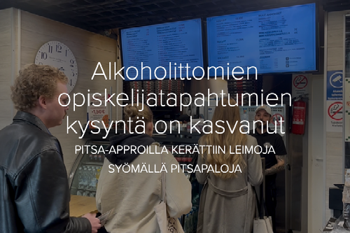 ”Idea lähti viime vuonna siitä, että approja on paljon, mutta mitä ne voisivat olla alkoholittomina – ja Oulussa on hyvä pitsakulttuuri”, kertoo Oulun insinööriopiskelijoiden puheenjohtaja Heini Pesonen.