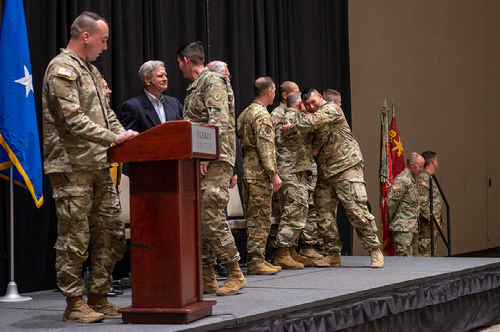 Lt. Governor Tammy Miller; Sen. John Hoeven; Sen. Kevin Cramer; Brig. Gen. Mitch Johnson, N.D. adjutant general; and Command Sgt. Maj. Jason Magnuson, senior enlisted leader, were in attendance and spoke at the event.