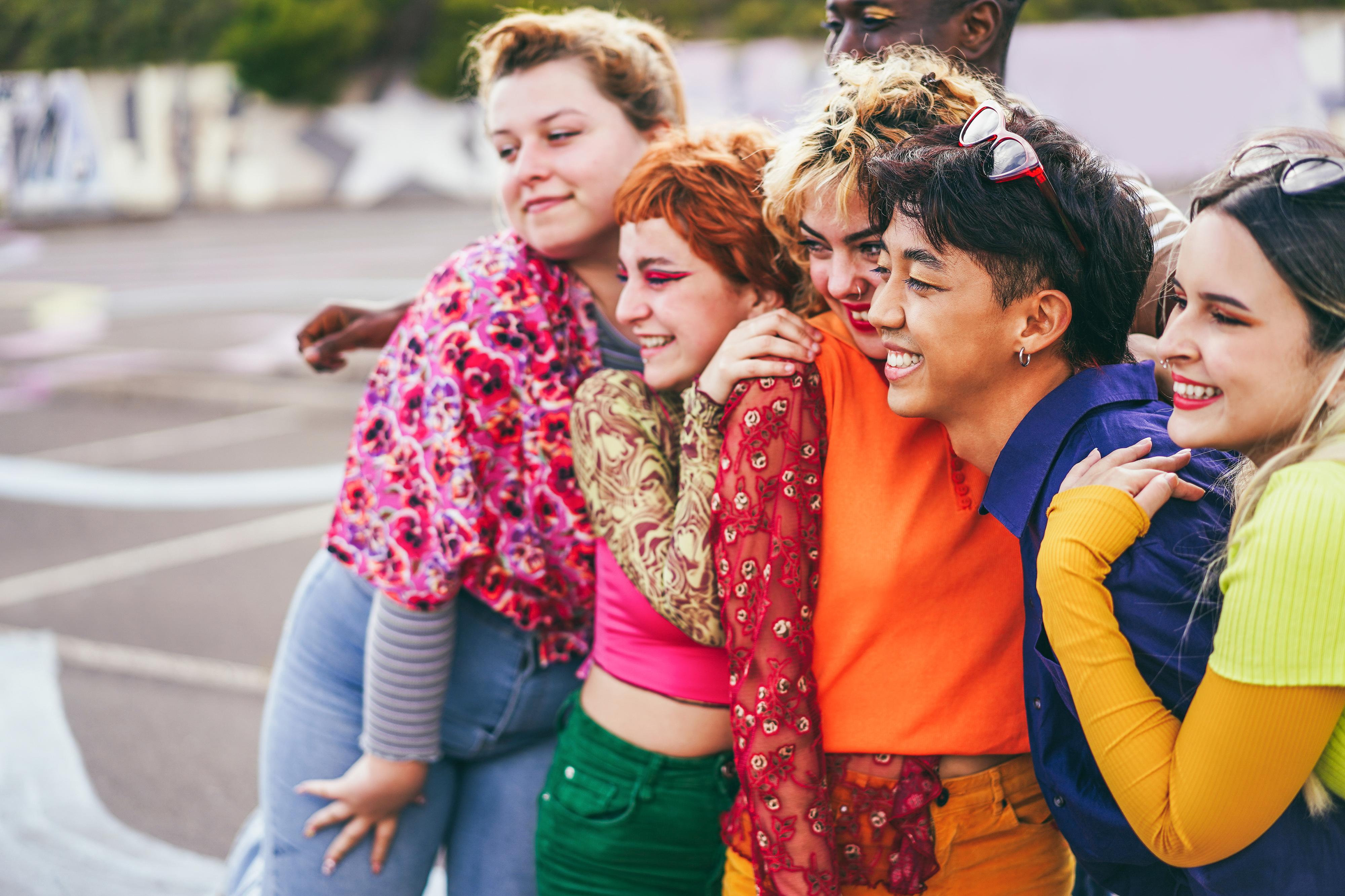 Created with images by Yuliya - "Skeleton Leaf .fragile multicolor texture macro leaf. Ease.Group of skeleton leaves.Macro structure delicate skeletonized leaf. " • ladavie - "Abstract Colorful Gradient Background" • DisobeyArt - "Young diverse friends having fun outdoor laughing together - Focus on asian guy face" • Aryanedi - "a diverse group of LGBT" • Temteen - "colorful abstract light purple pink blue teal neon pastel gradient dreamy background Panoramic" • Natalia - "person at desk with headphones, conducting online therapy" • puttipong1v - "colorful background" • boas73 - "Sexy plus size woman" • AI Backgrounds - "Minimalistic Abstract gradient rainbow color or light colorful background." • PapatoniC - "Concept of unity and support for the LGBTQ+ community" • Giffany - "Abstract combination of yellow , orange, pink and blue solid color linear gradient background on the horizontal frame" • panitan - "work using texting cell phone typing computer.chatting on mobile,laptop contact us at workplace Thinking investment plan Investor.searching information internet.connecting people concept"