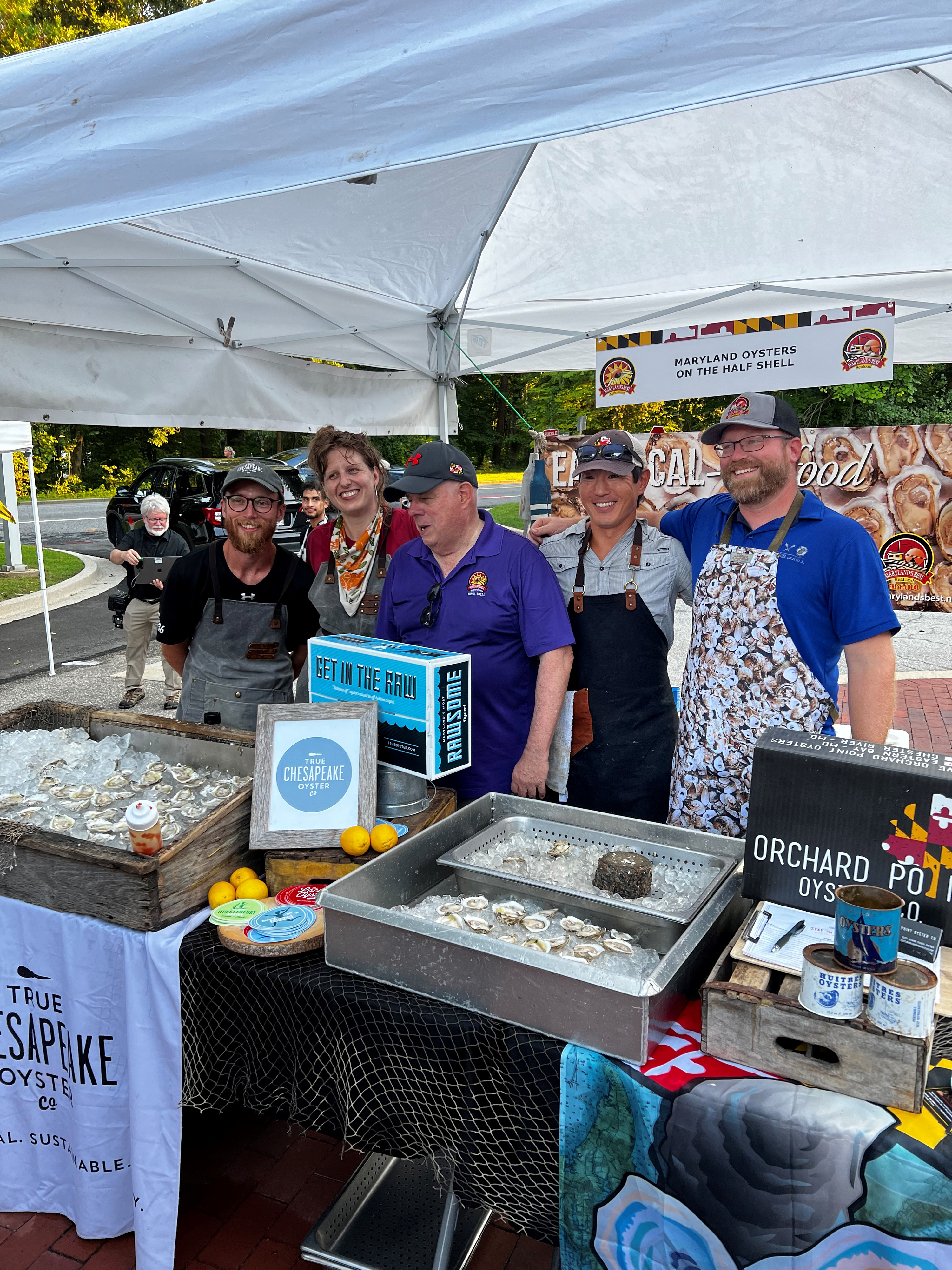 Governor Hogan samples Maryland farm raised oysters from True Chesapeake Oyster Co, Orchard Point Oyster Co. and Salt Buoys from Fallen Pine Oyster Farm