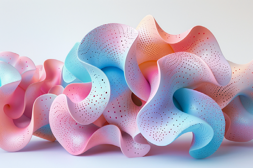 This is an interesting and suggestive image. It is just an abstract form, but the wavy shapes, the kind of organic patterns of the dots, and the vibrant and minimal color palette work very well. I would have preferred to have the element fully framed on the image, instead of being prolonged outside since it would have been easier to adapt to the customer's needs in framing.