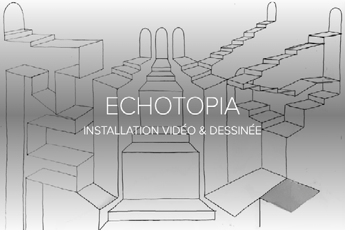 ECHOTOPIA consiste en une spatialisation graphique et sonore qui intègre une projection vidéo. Les fragments vidéos ont été réalisés dans le cadre d'un workshop par les étudiants de Licence 3 en Arts et Design de l'Université de Corse Pasquale Paoli.