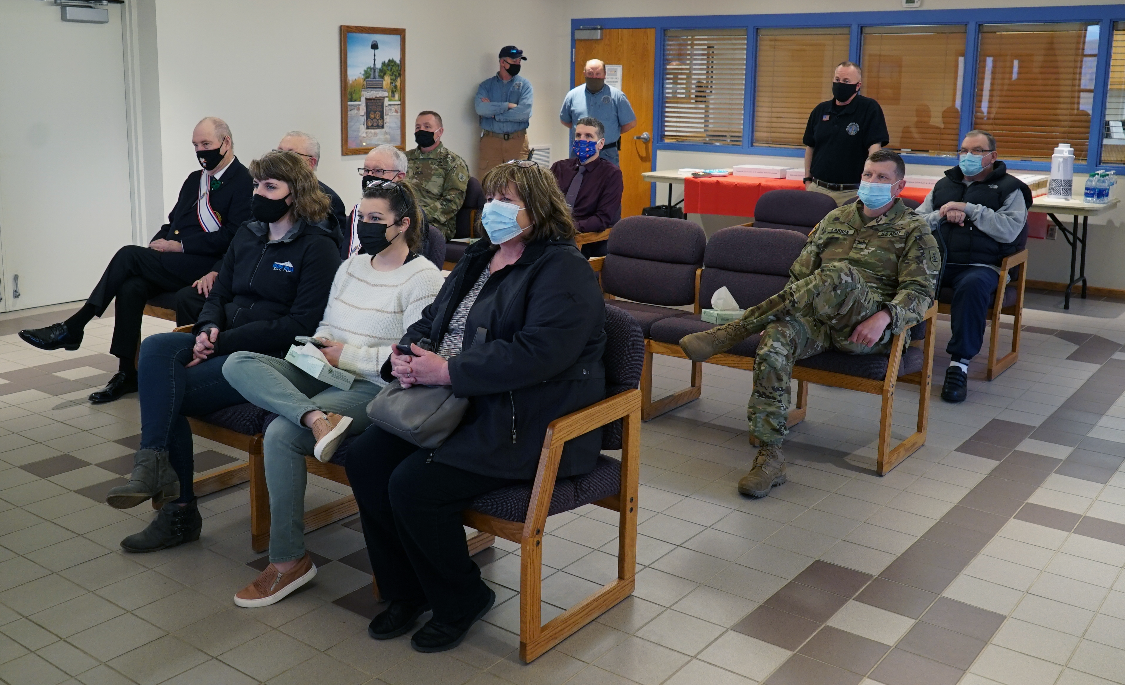 Maj. Gen. Al Dohrmann, N.D. adjutant general, co-workers, family and friends joined Fort Abraham Lincoln Park Manager Dan Schelske, and Park Ranger Maureen "Mo" Trnka for a retirement appreciation ceremony at the N.D. Veterans Cemetery (NDVC) chapel, Mandan, March 17, 2021. (U.S. National Guard story and photos by Sgt. 1st Class Charles Highland, N.D. National Guard Public Affairs Officer)