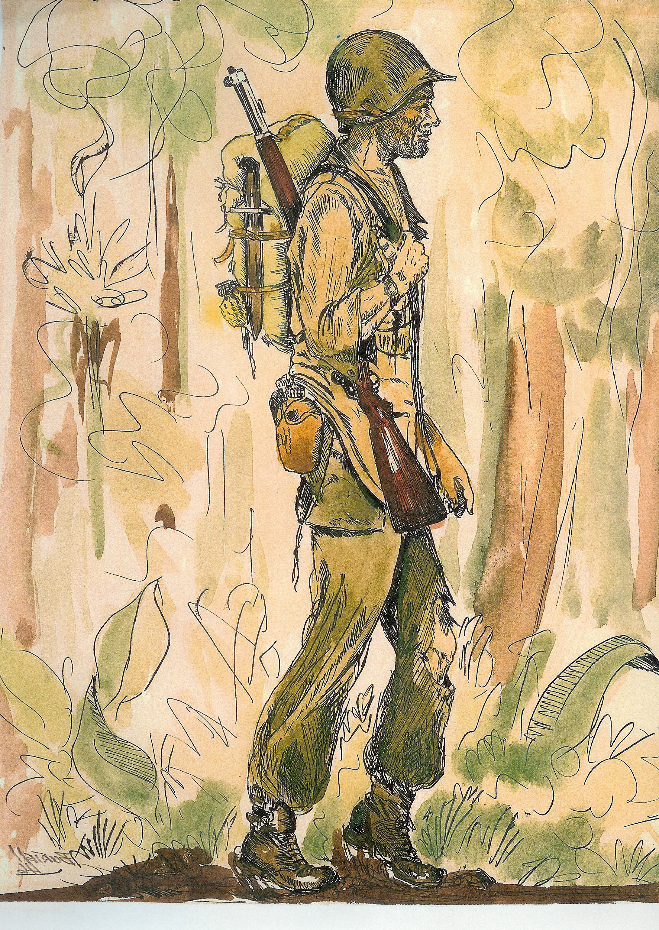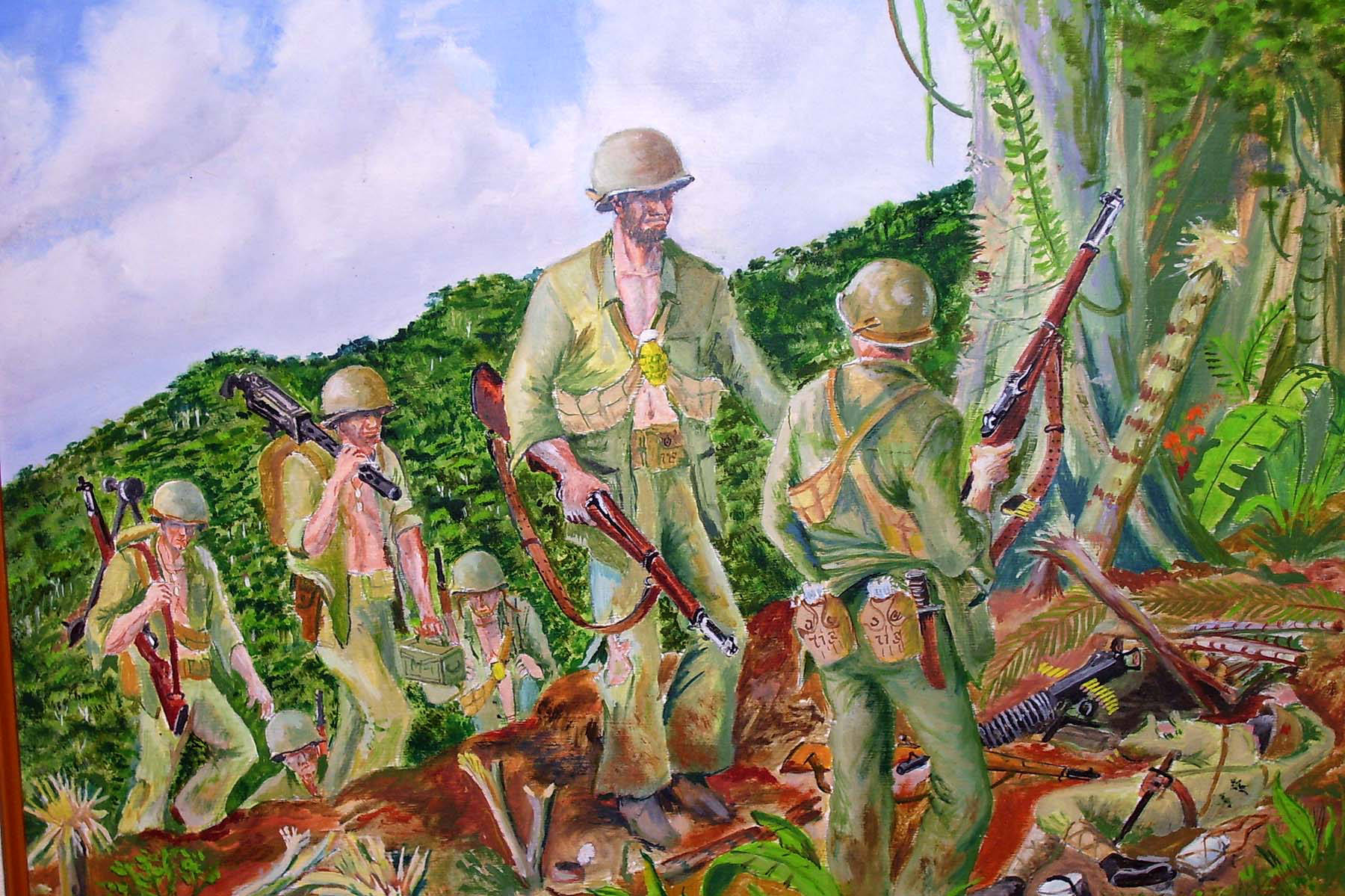 Burtell was only 16 when he joined the 164th Infantry Regiment in late 1940, never dreaming that he’d be dodging shells on a remote South Pacific island by the time he turned 18. Assigned to the Intelligence and Reconnaissance Section of regimental headquarters, he was trained to interpret aerial photographs, draw maps based on reconnaissance patrols, and analyze captured materials.