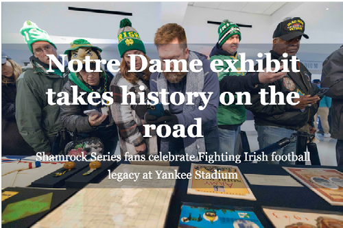 “Having the opportunity to present our collections in different environments, particularly environments that are relevant to the story, has immense value to the patron,” said Patrick Milhoan, head archivist for the University Archives. “It's an engaging way to showcase our collections to people who may not be able to otherwise see them, and allows for fans to not only learn more about the history of the University of Notre Dame and Yankee Stadium, but also learn about the mission of the Hesburgh Libraries and the expertise of our archivists and curators.”