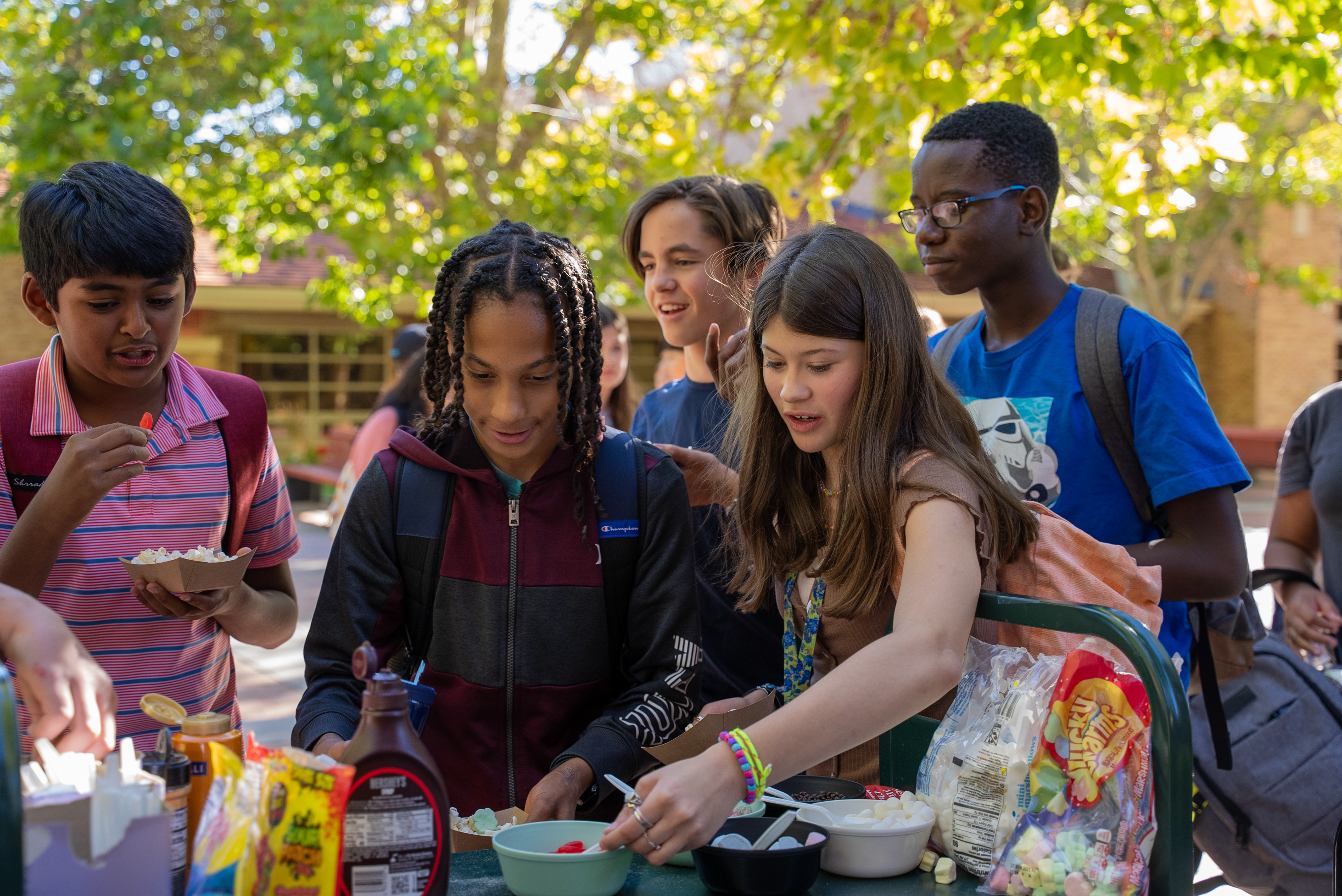 Our Bridge to Success program for rising 6th graders is designed to ensure a smoother and more comfortable transition to a new school. This week-long program includes instruction on study skills, a new-student orientation, team-building with new classmates, and an introduction to campus, including opportunities to use the bike park, visual arts studios, playing fields, pool, garden, and library. More than 90% of our newest students take advantage of this free, optional program.