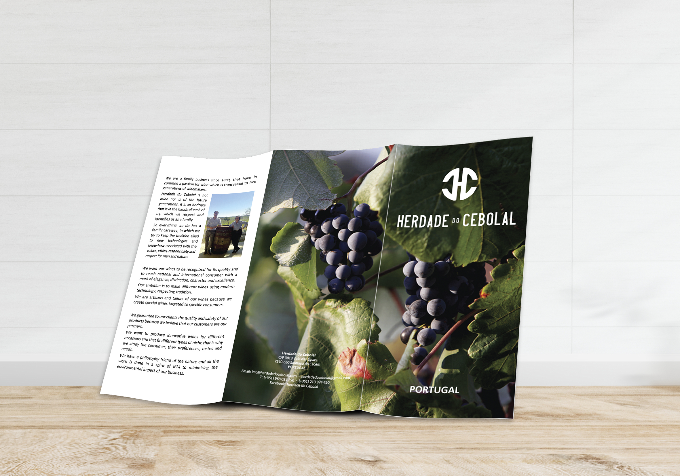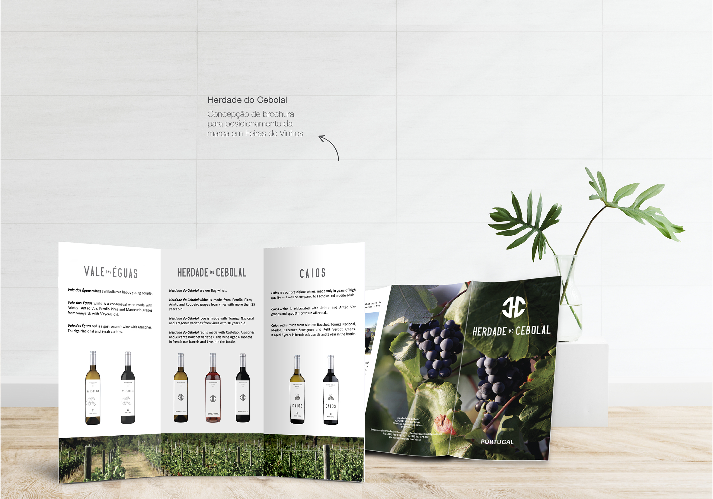 Criatividade e concepção de brochura para posicionamento da marca Herdade do Cebolal em feiras e acções da marca.