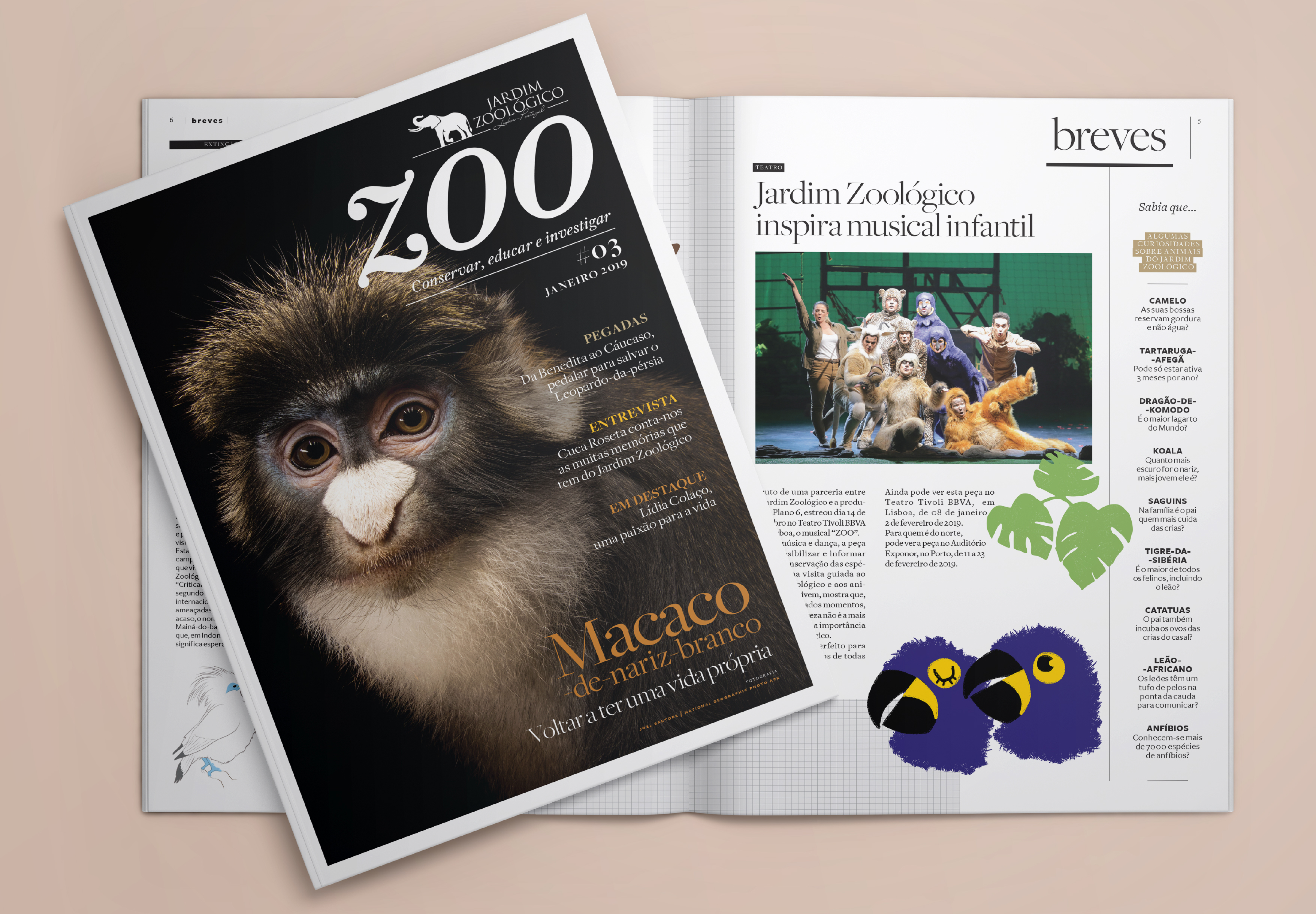 Desenvolvimento da revista semestral do Jardim Zoológico, desde a concepção criativa dos conteúdos à paginação. Revista desenvolvida e distribuída aos parceiros para divulgar a missão, as principais acções e novidades. Reforça a ligação com a comunidade e promove iniciativas, projetos e espécies em destaque.
