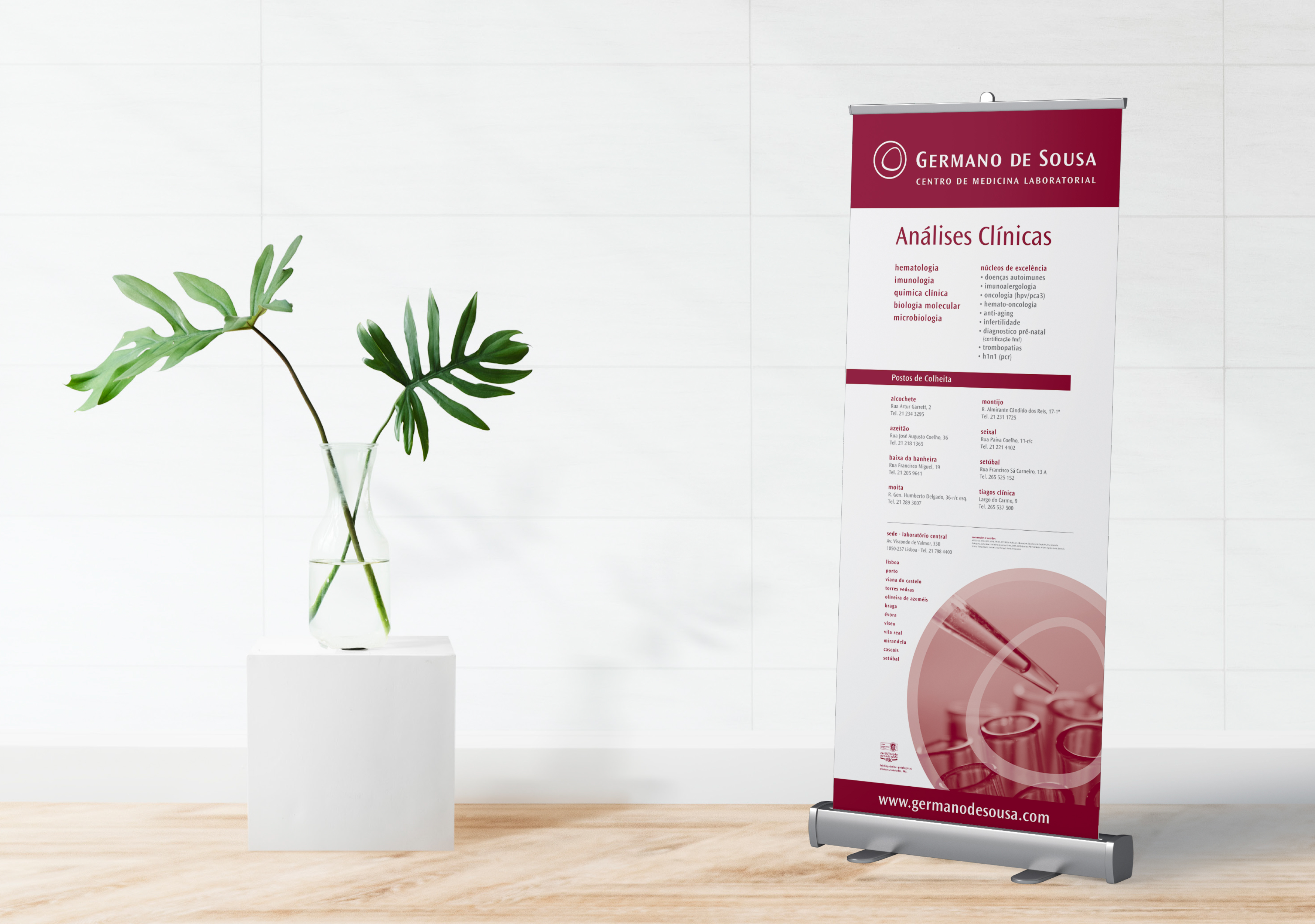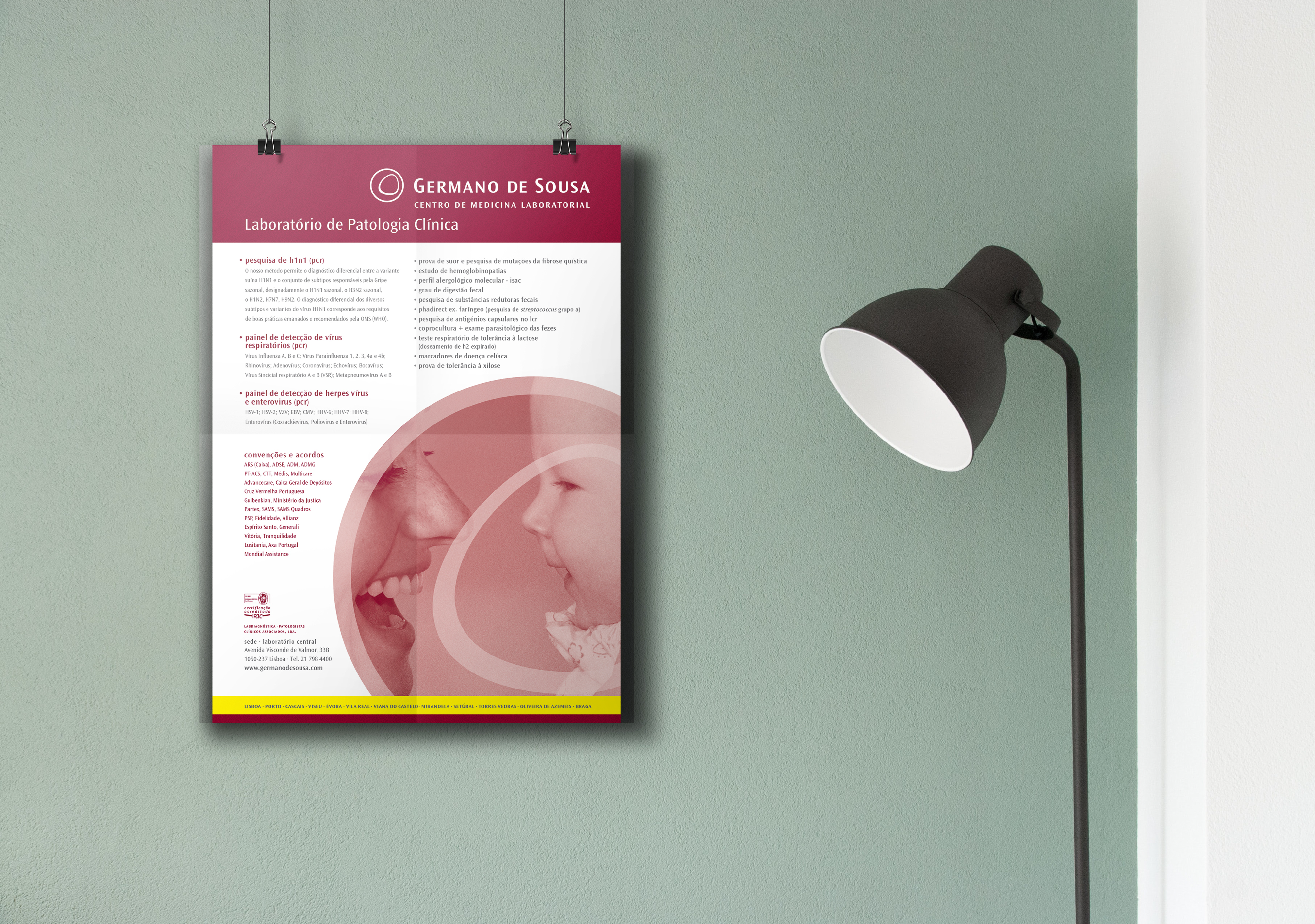 Concepção de brochuras, cartazes e identidade institucional para os diversos laboratórios Germano de Sousa.
