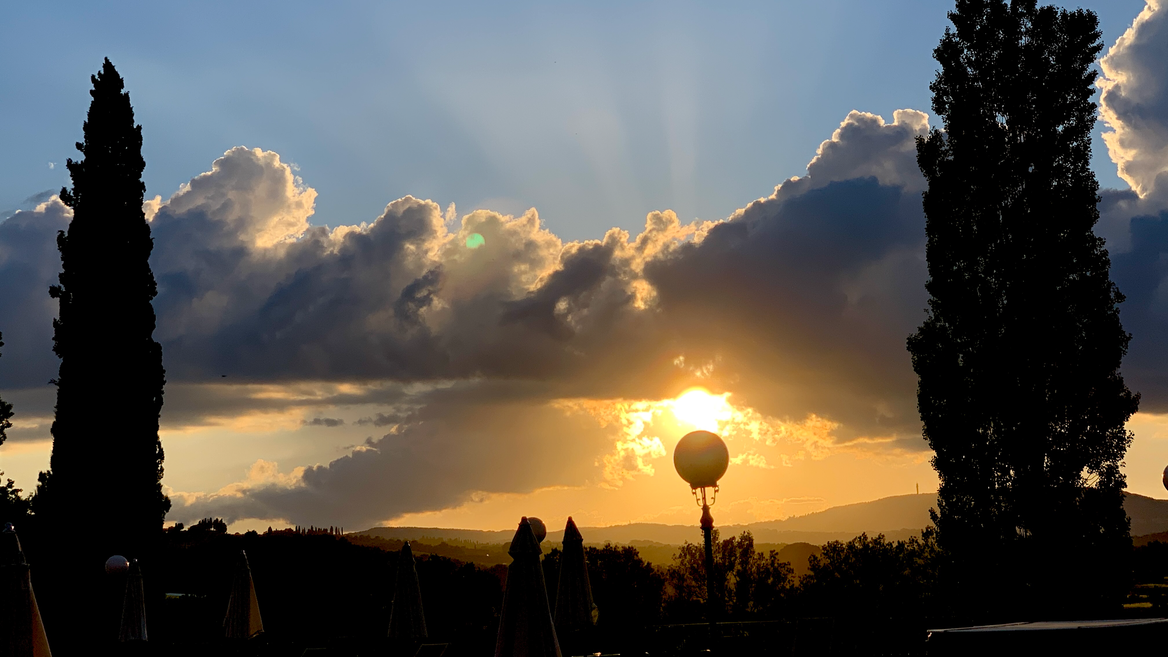 Ci-dessus : les cyprès de La Sovana au couchant.