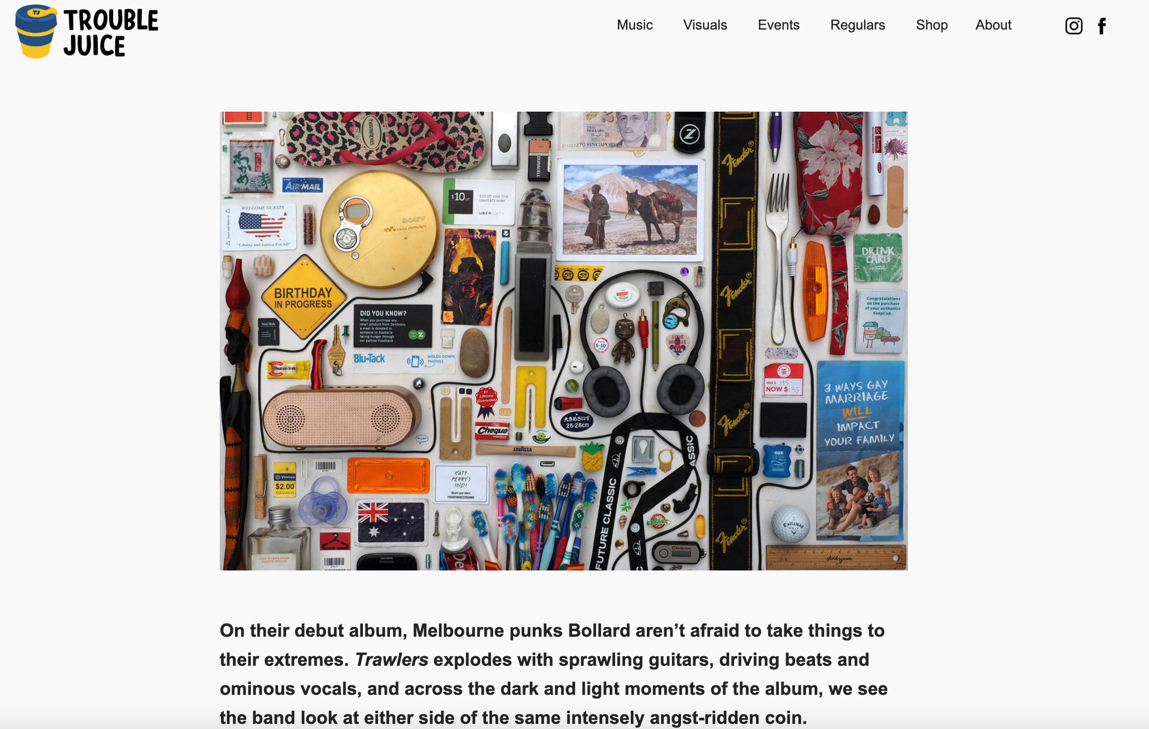 "Trawlers explodes with sprawling guitars, driving beats and ominous vocals, and across the dark and light moments of the album, we see the band look at either side of the same intensely angst-ridden coin." - Trouble Juice
