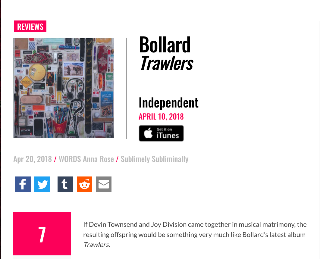 "Bollard are wonderfully unpredictable and dark, no two songs are the same and every song we've heard is a piece of art in itself. The Trawlers album awaits the interested listener with a total of eleven tracks and offers him a journey through the possibilities of musical expression. Sometimes somber like the opener “Meningococcal”, sometimes the track “Windows” that makes you want to dance and which definitely has to be tried out at the next party. A crazy, brilliant piece of music." - Darklife magazine
