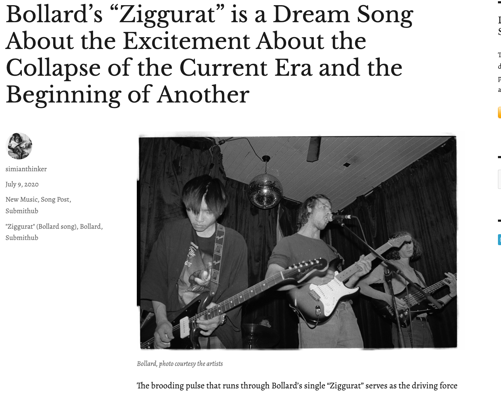 "Brooding alternative post-punk is what gets us high, hard or whatever at Soundsphere at HQ, and let me tell you that this is doing it for us just now. Bollard have returned with an absolute banger." - Soundsphere