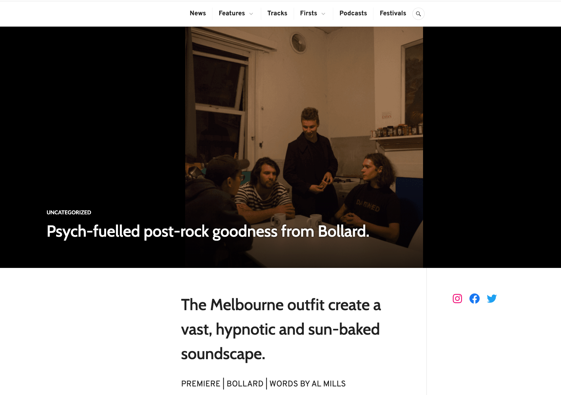 "It took about 5 seconds of listening to Bollard’s latest track Yourself for me to declare my love for the Melbourne based collective of musicians who share my affinity for the Alt 90’s sound. Even to describe Bollard’s sound as overwhelming seems like a massive understatement." - A&R factory