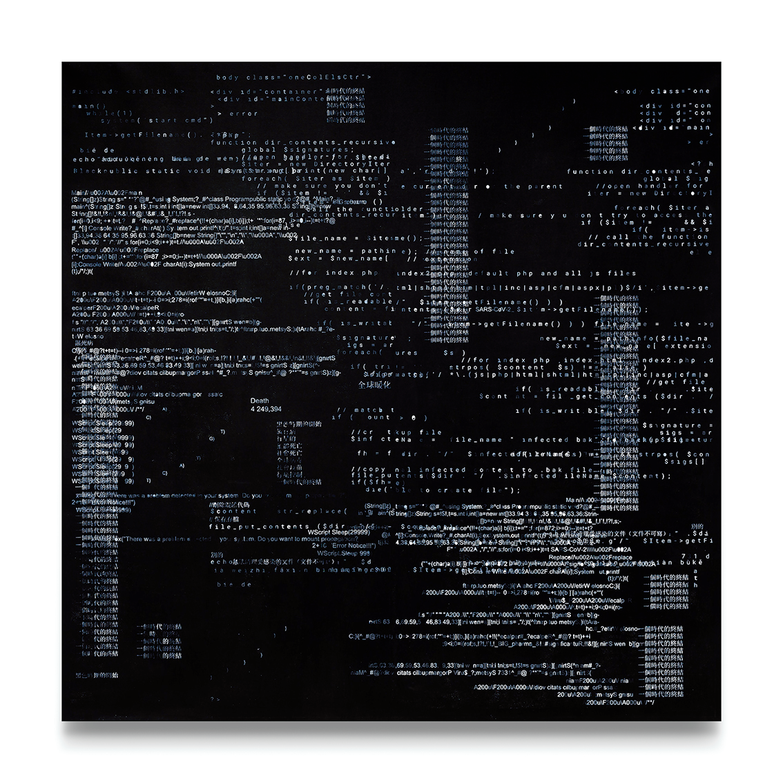 Estas pinturas exploran y reinterpretan secuencias de códigos, combinándolas con textos en mandarín y otros idiomas. Fusionan los códigos binarios de los virus digitales con las secuencias de virus biológicos. Estas obras reflejan las complejidades de la pandemia global, donde la integración de lenguajes aparentemente dispares da lugar a una nueva materialidad pictórica, que resuena con nuestra época cada vez más interconectada.