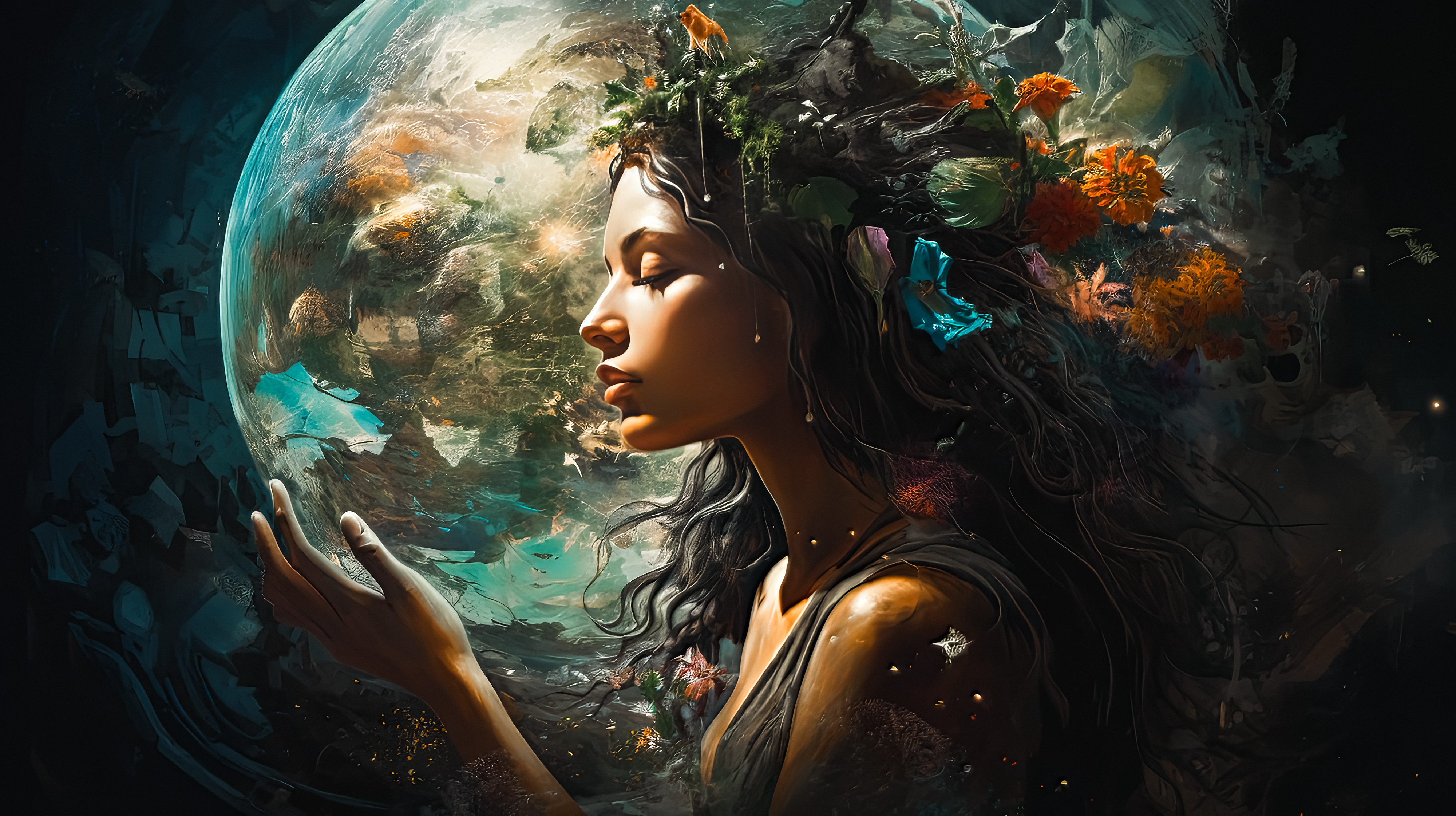 Created with images by • piai - Robotic Hand Holding a Pen Writing on White Paper: Symbolizing Digitization and AI Artificial Intelligence • ARTMAXX - Spiritual Connection: Woman Linked to Mother Earth (Gaia) Embracing Universe's Power, Nature's Wisdom Harmony with the Cosmos • javierglezphoto - Statue of Sor Joan Agnes, in Madrid, Spain • ChaoticMind - A lone silhouette ascends a set of stairs within a futuristic, abstract environment characterized by sweeping, minimalistic design elements and stark contrasts. • Sidewaypics - Fleur de lis Royal Emblem Christianity Religion Spiritual Symbol