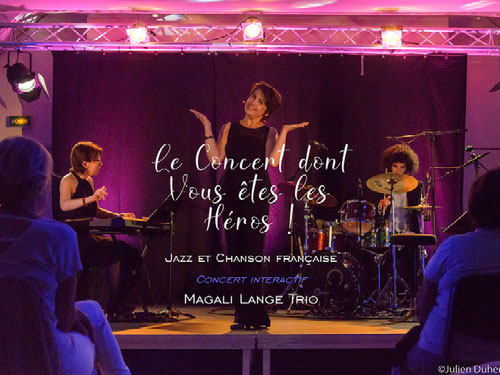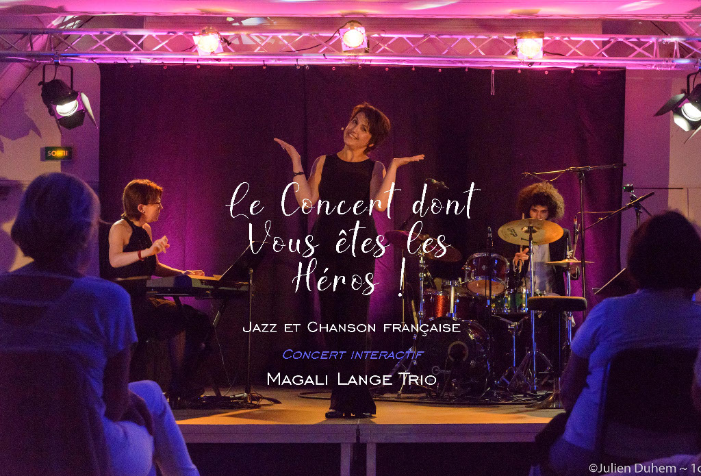 Magali Lange, accompagnée d' Aude Moralès-Robin, pianiste, et Erwan Morisse, batteur, met ses talents de chanteuse et de cheffe de choeur au service de ce concert interactif : elle chante.... et fait chanter le public!