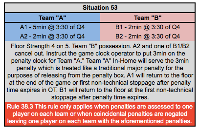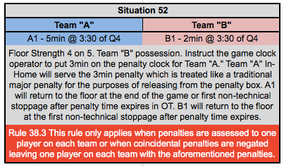 3) Require that all players withdraw to the sides of the floor and in front of their own players’ bench. The SCO’s primarily responsibility will be to monitor the benches and all players during the penalty shot.