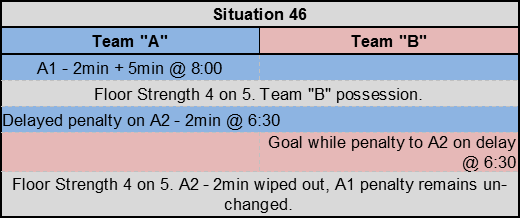 The following situations involve the scenario where a shot by Team A is ruled no goal on the floor and Team B subsequently scores a goal shortly after.