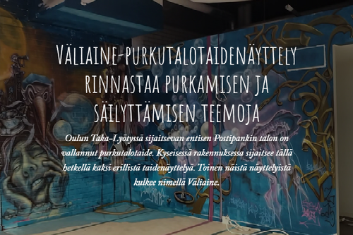 Pihlajaniemi kertoo Väliaine-näyttelyn toteutuneen, kun hän oli saanut Oulun kaupungin valistustalorahaston apurahan purkutalotaidehankkeeseen. Sen jälkeen hän oli kutsunut taiteilijoita liittymään näyttelyyn sekä osa näyttelyyn liittyneistä taiteilijoista olivat ottaneet häneen itse yhteyttä.