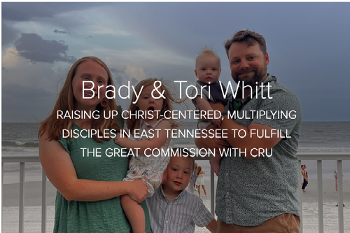 Through reaching students in East Tennessee and across the globe, we continue to be passionate about sharing the gospel and helping students grow in their faith in Jesus Christ. We enjoy what we do and would love to share more with you about our adventures in full-time ministry with Cru!