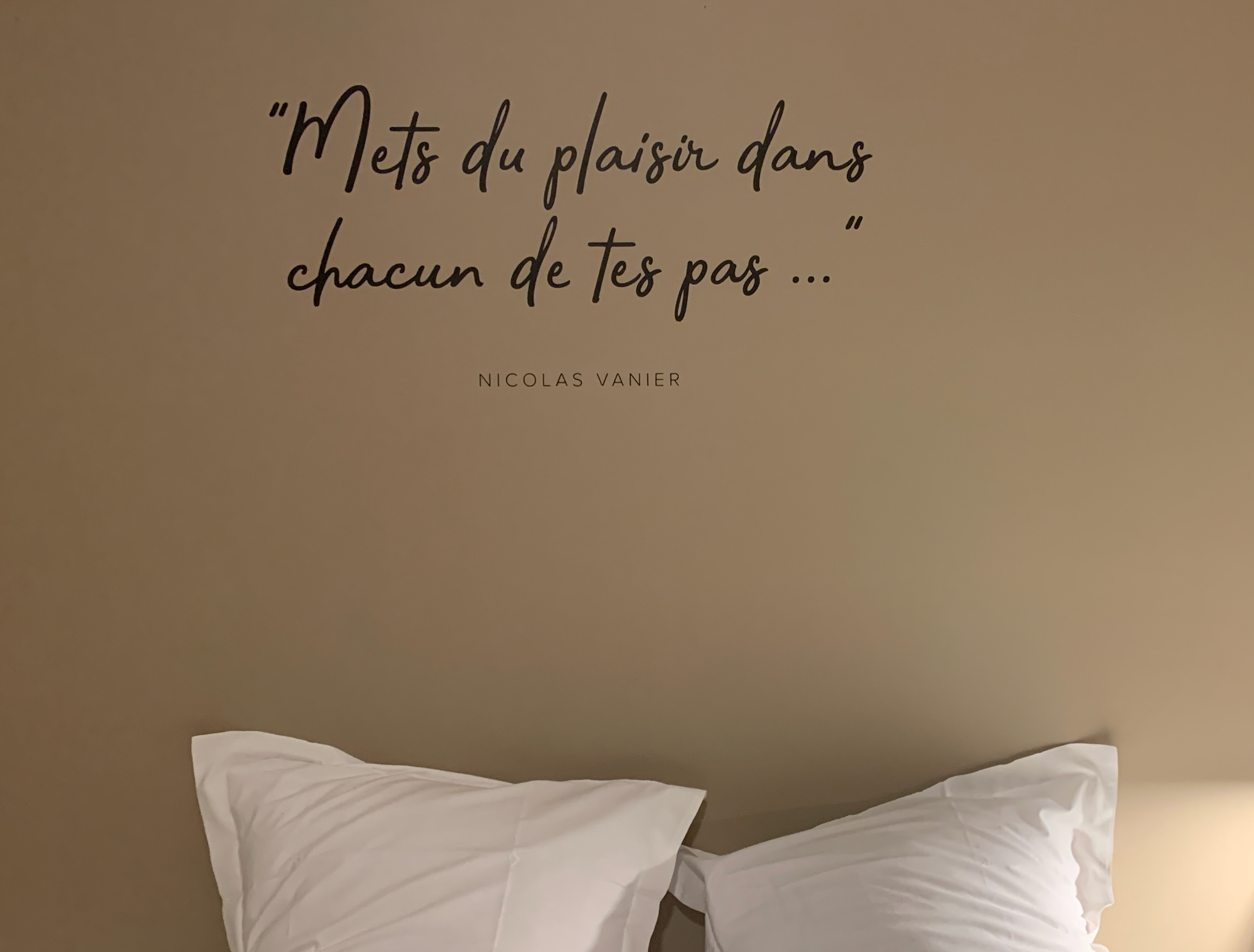 Juste le temps de choisir le menu, de mettre aérer nos affaires (merci Carine pour cet accessoire si pratique), une douche, un apéritif et un délicieux repas, nous voilà prêtes, Valentine et moi, pour de doux rêves sous cette citation, un peu utopique certaines fois.
