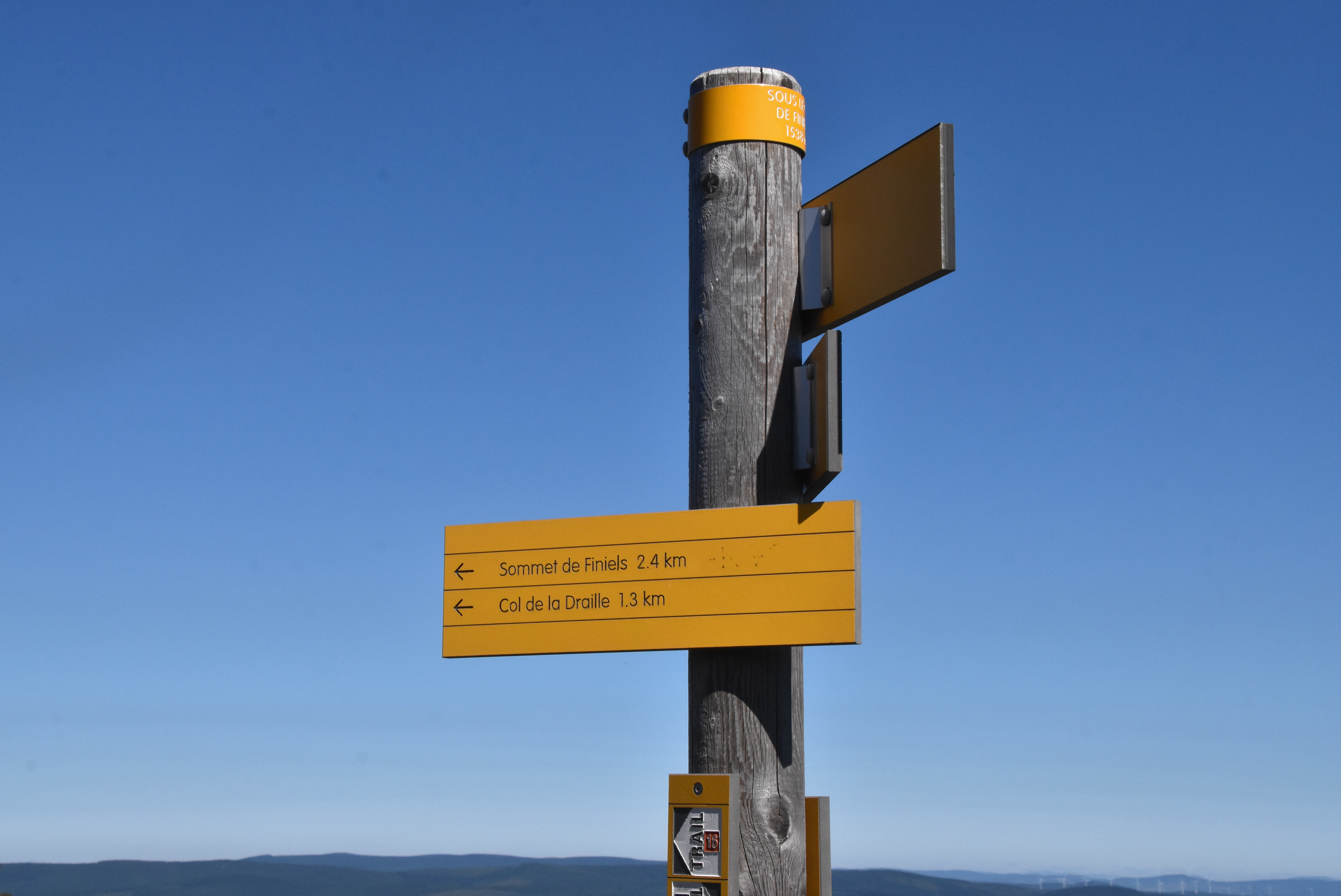 Ci-dessus : la borne au sommet du Finiels, 1699 m