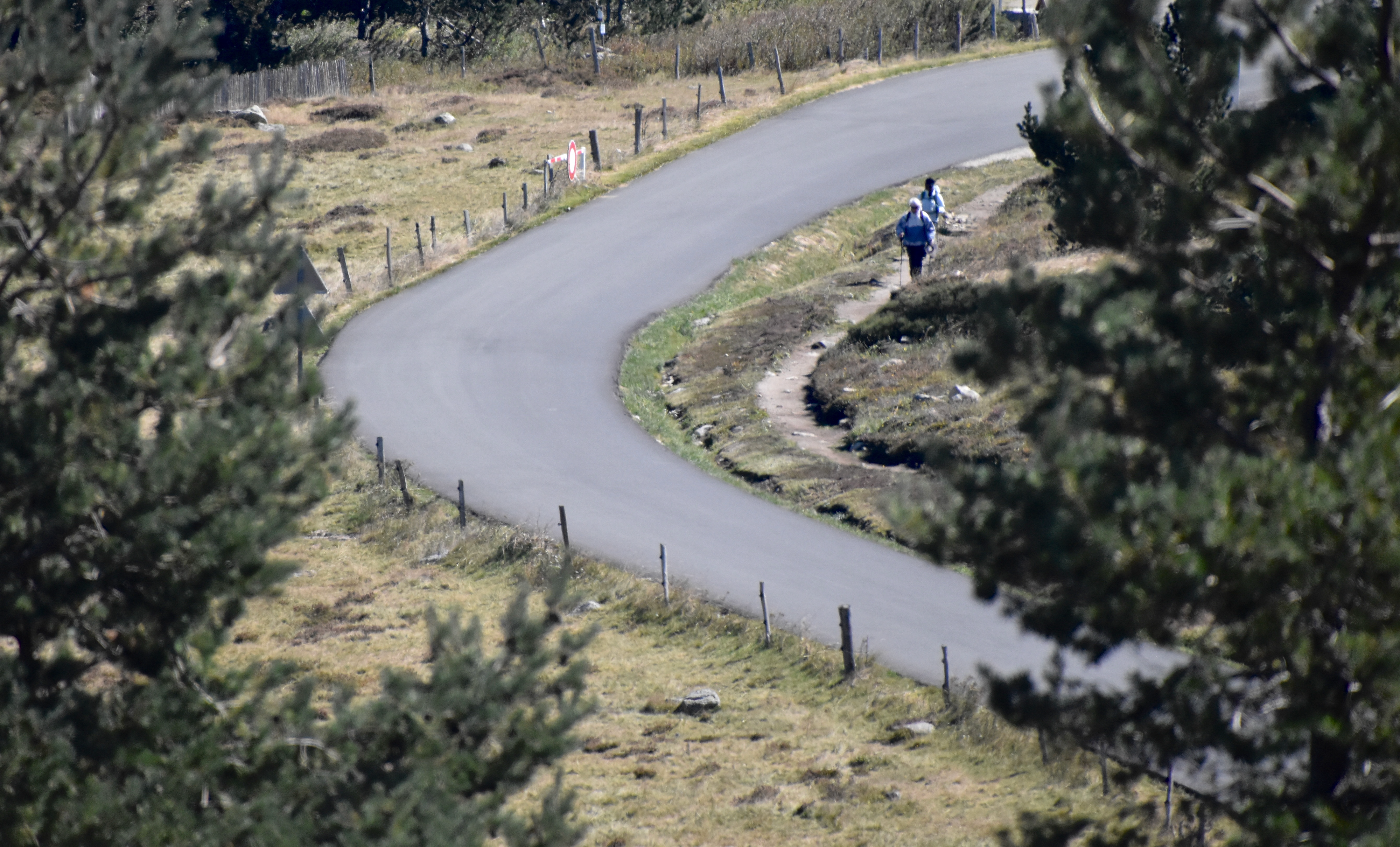 La pause café, glace, eau et caresses à Loki, le Main Coon de 3 mois, nous aura été fatale. Attirées par une jolie sente, à gauche, le long de la route D20 nous sommes partis vers le col de Finiels plutôt que vers le sommet.