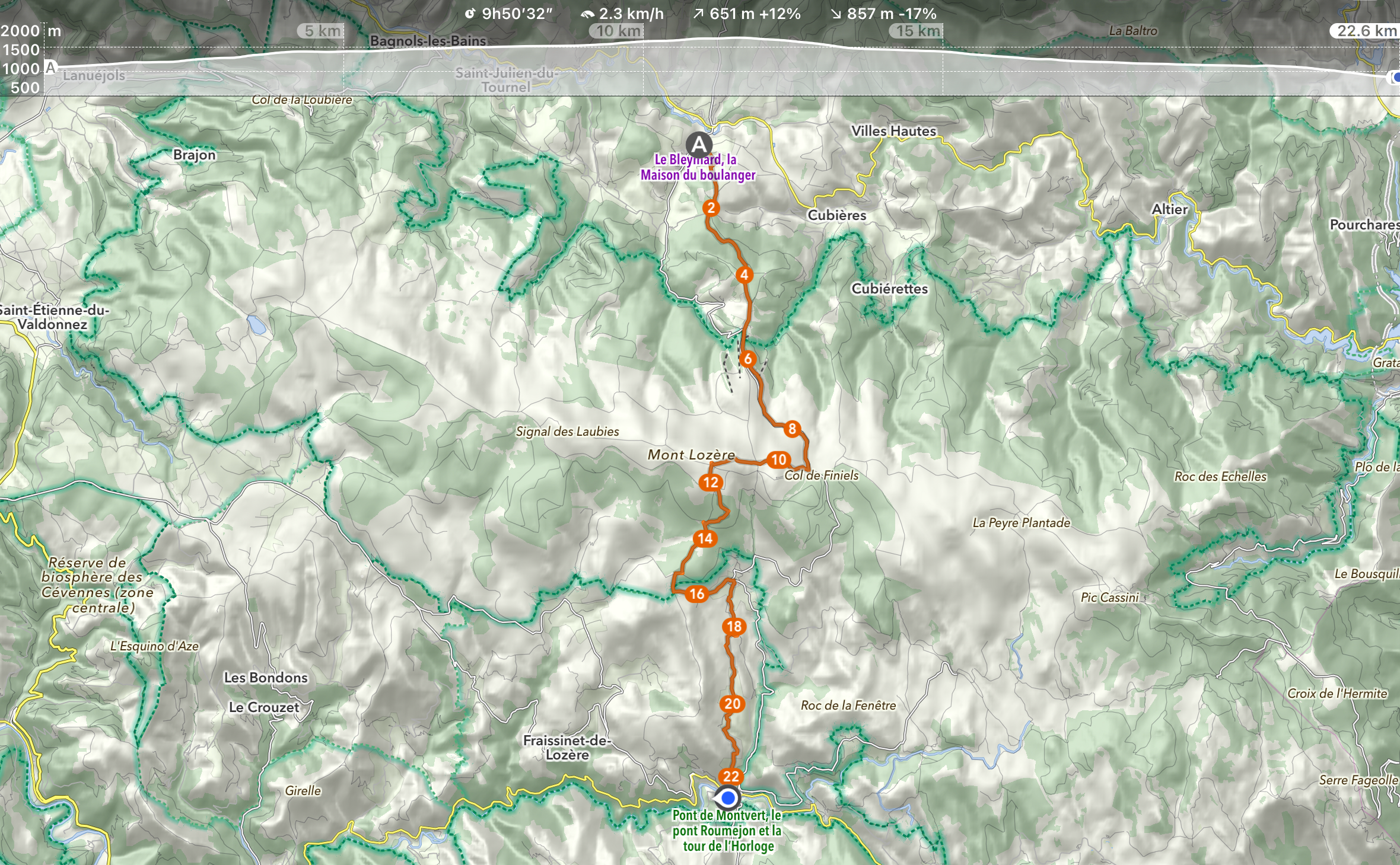 Le parcours prévu : Le Bleymard > Le Pont-de-Montvert, 19,3 km…